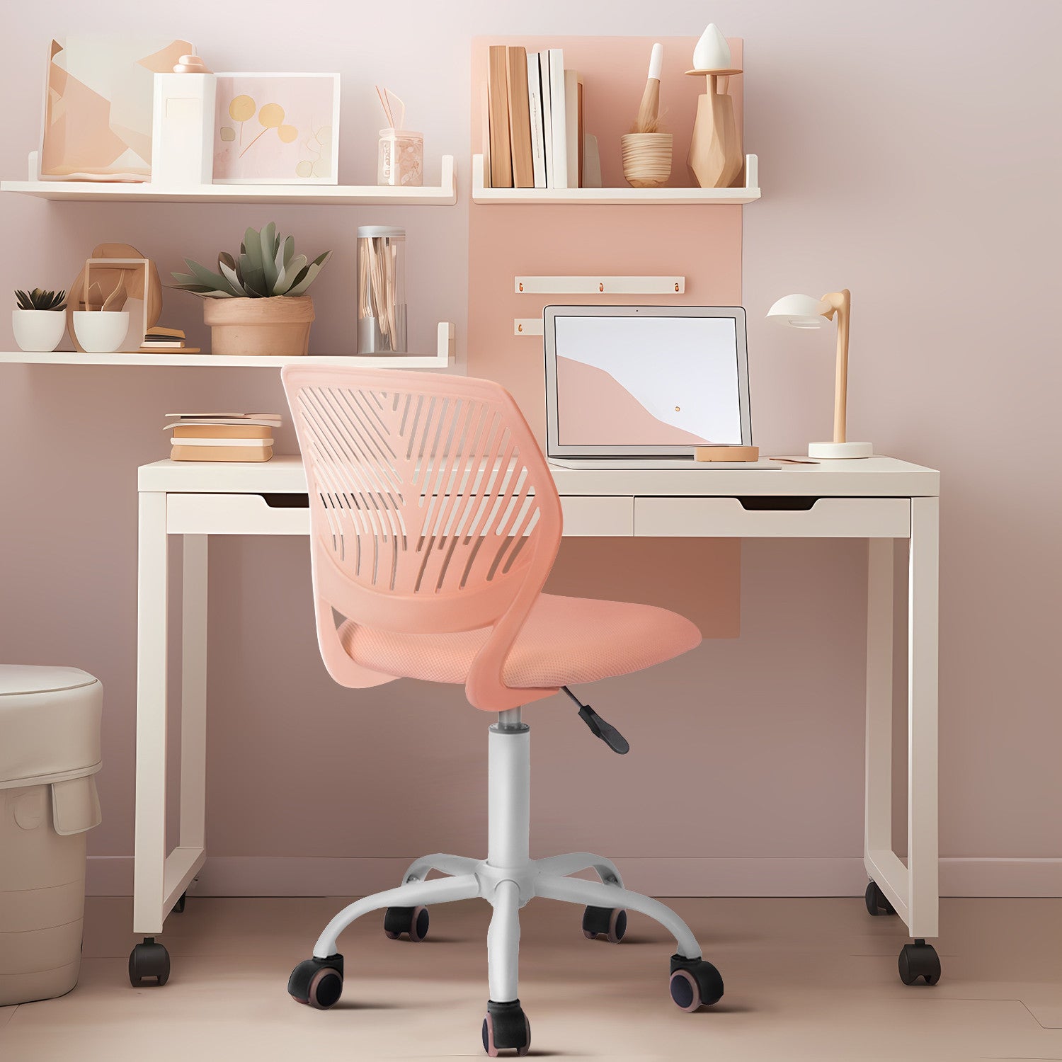 Baby Pink and White Adjustable Height Swivel Rolling Office Chair