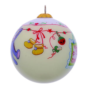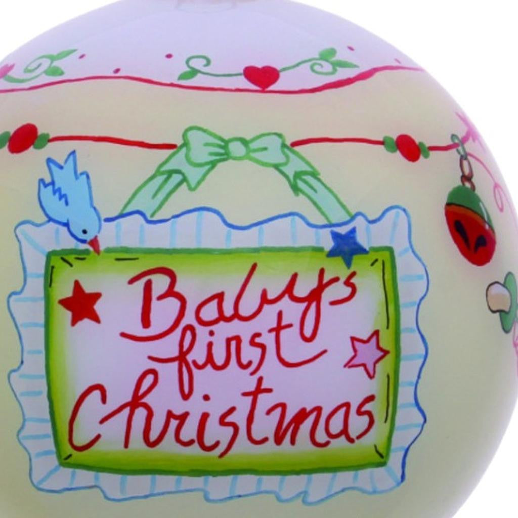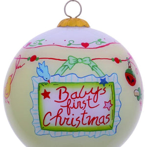 Baby's First Christmas with Motifs Hand Painted Mouth Blown Glass Ornament
