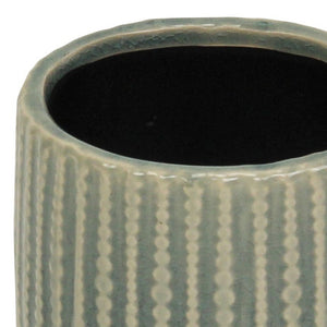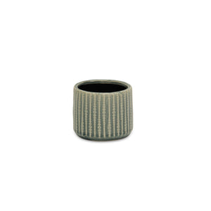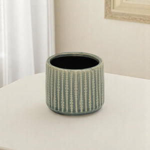 Beige And Green Ceramic 12 Ounce Striped Round Distressed Pot Planter