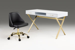 Black and Gold Faux Leather Adjustable Height Swivel Rolling Office Chair
