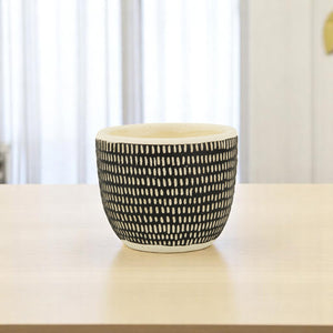 Black And White Ceramic 39 Ounce Dotted Round Distressed Pot Planter