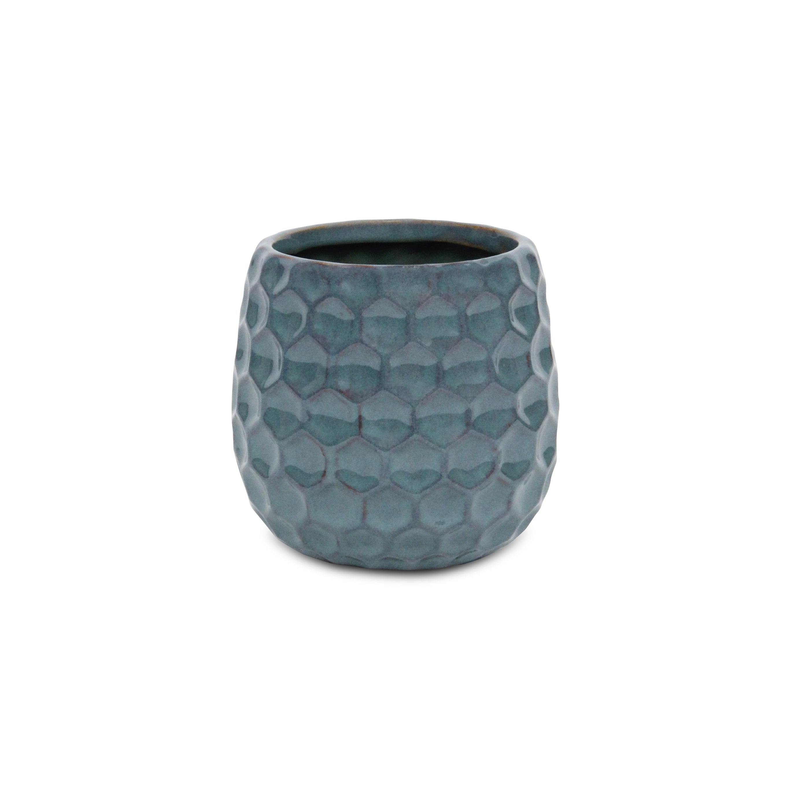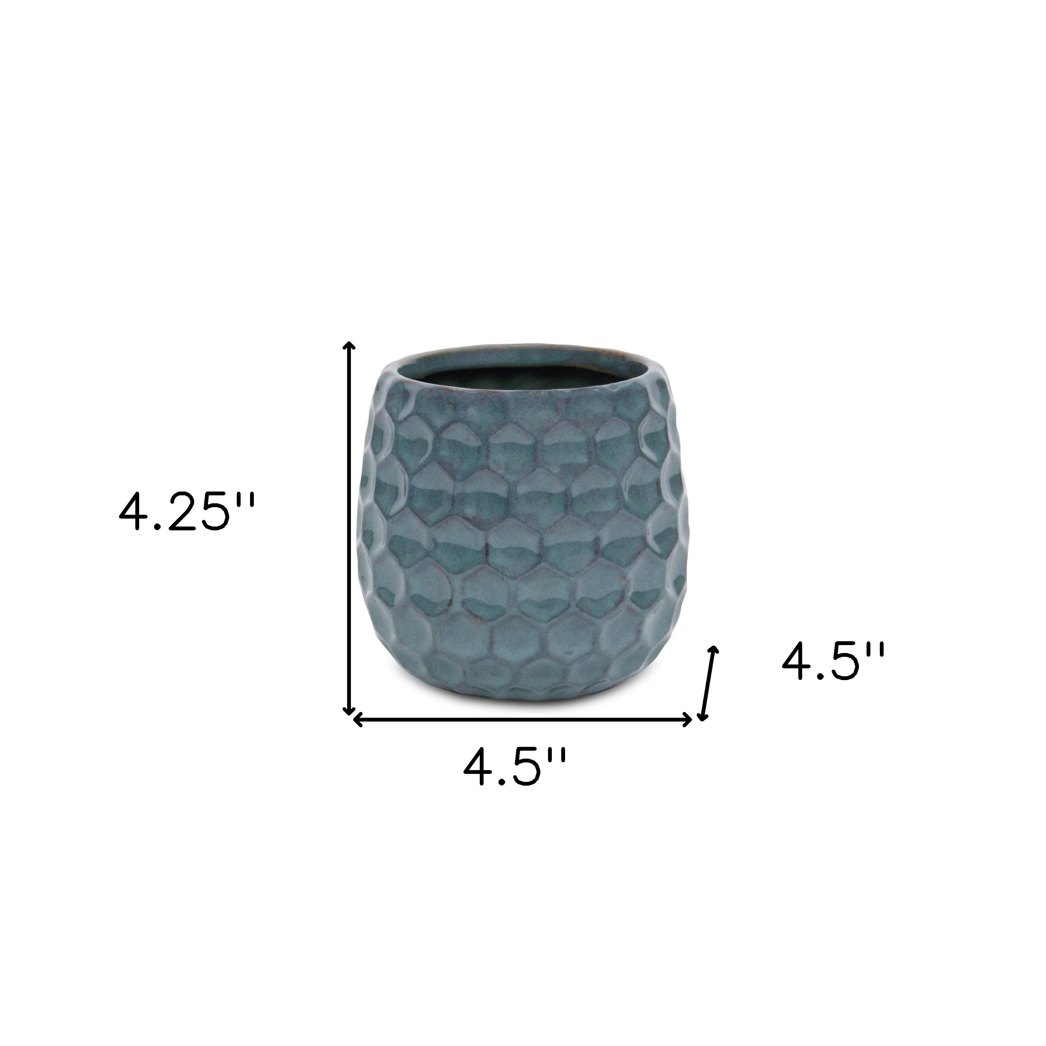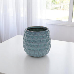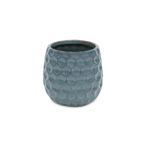 Blue Ceramic 15 Ounce Round Distressed Pot Planter