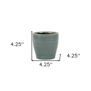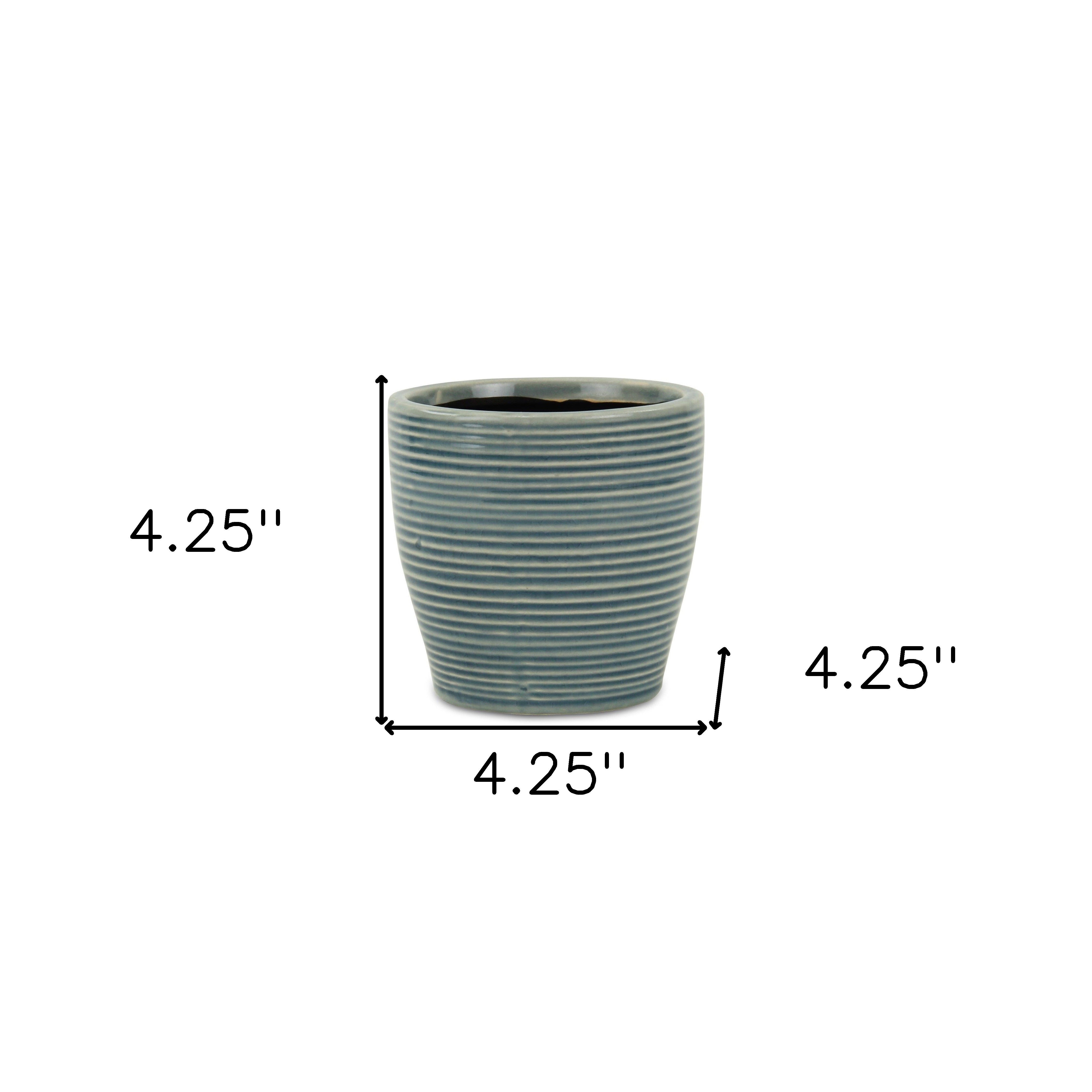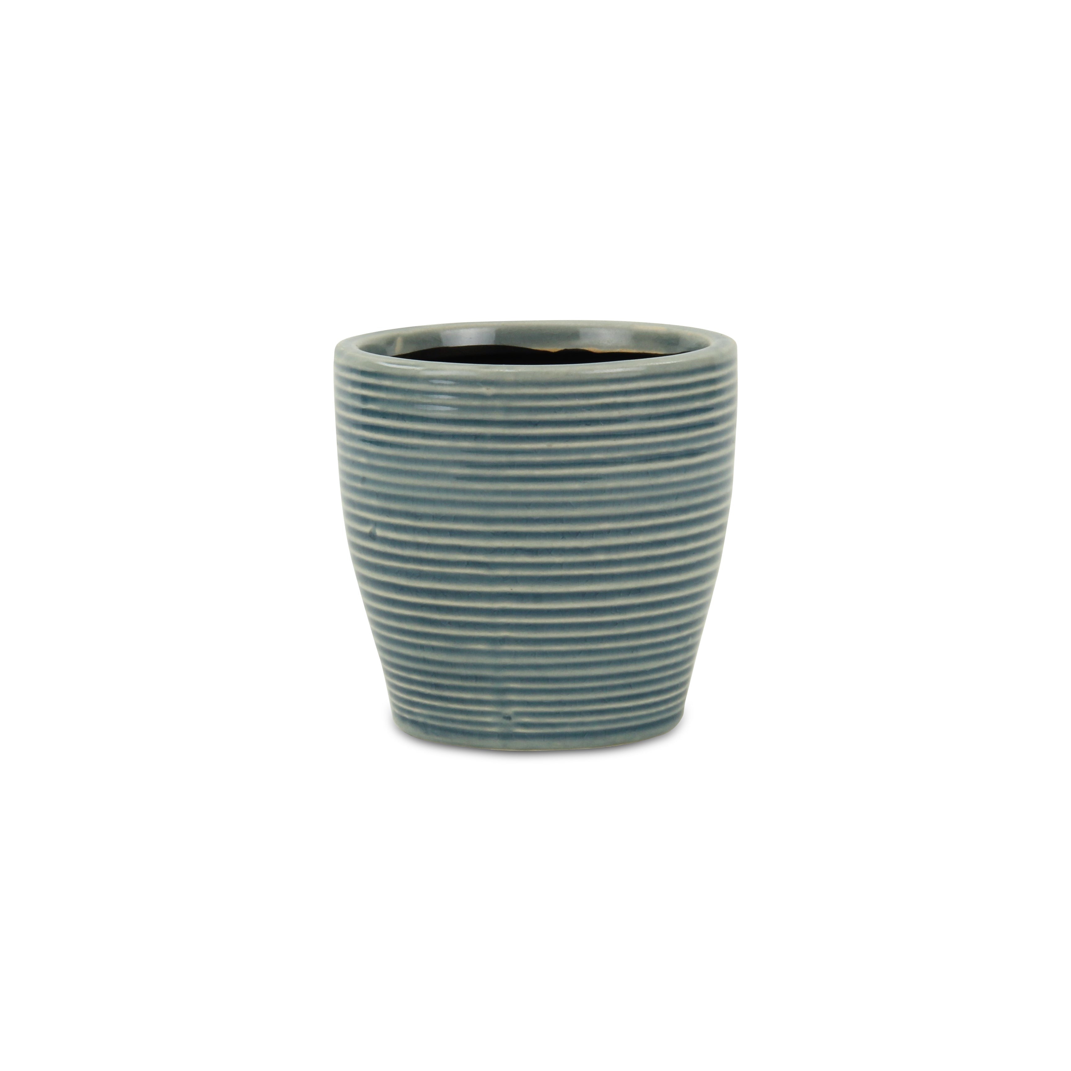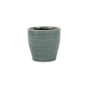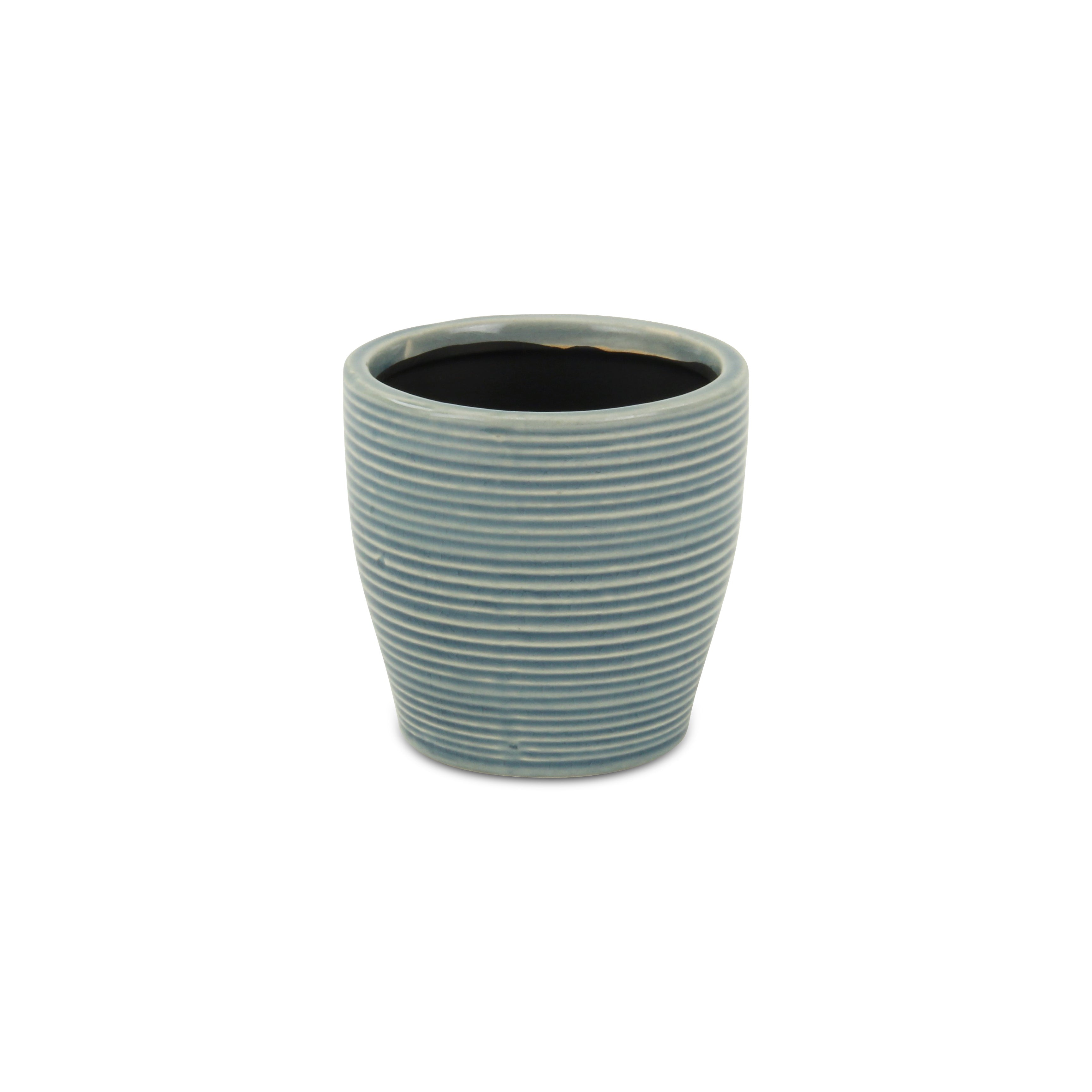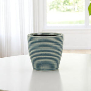 Blue Ceramic 22 Ounce Striped Round Distressed Pot Planter