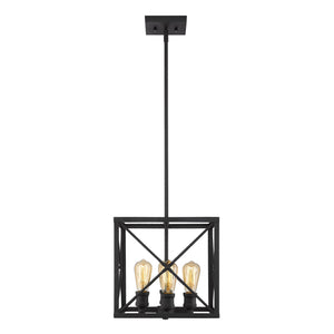 Brooklyn 4-Light Matte Black Pendant With Metal Framework Shade
