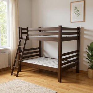 Brown Queen Over Queen Solid Wood Bunk Bed