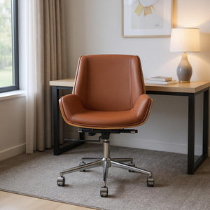 Brown Rosewood and Silver Adjustable Height Swivel Rolling Conference Office Chair