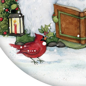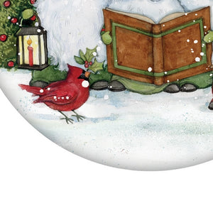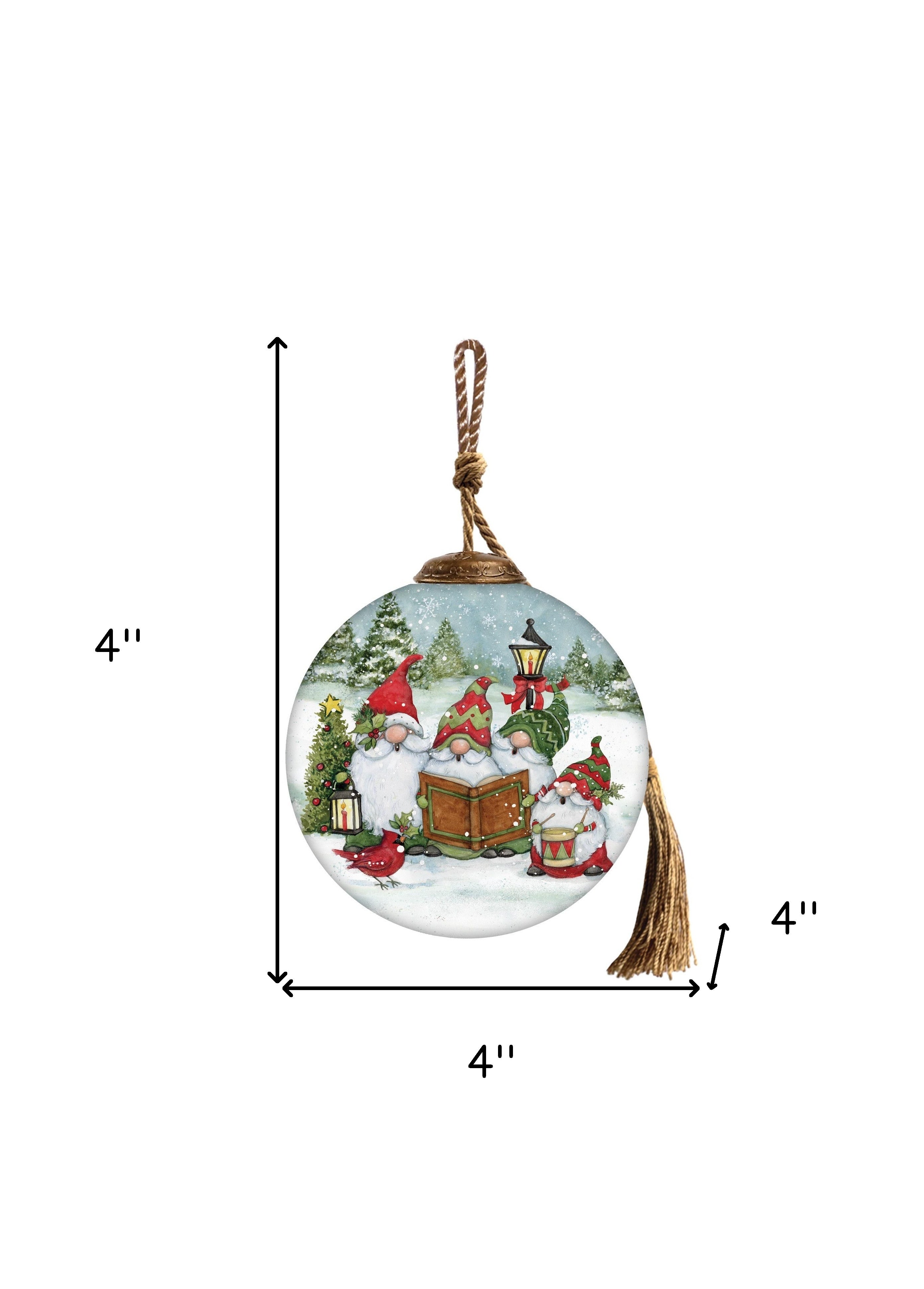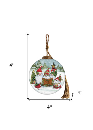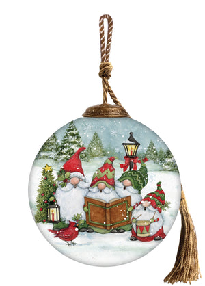 Caroling with my Gnomies Hand Painted Red Green And White Glass Ball Ornament