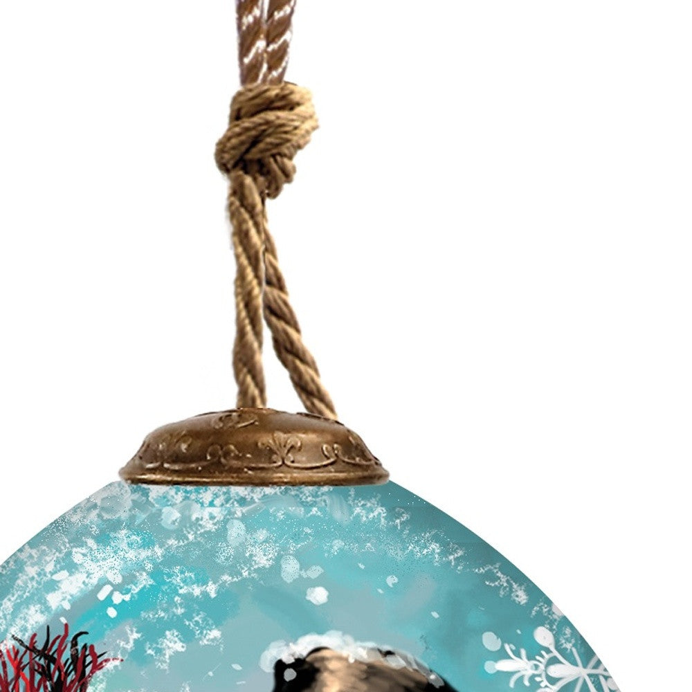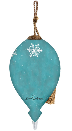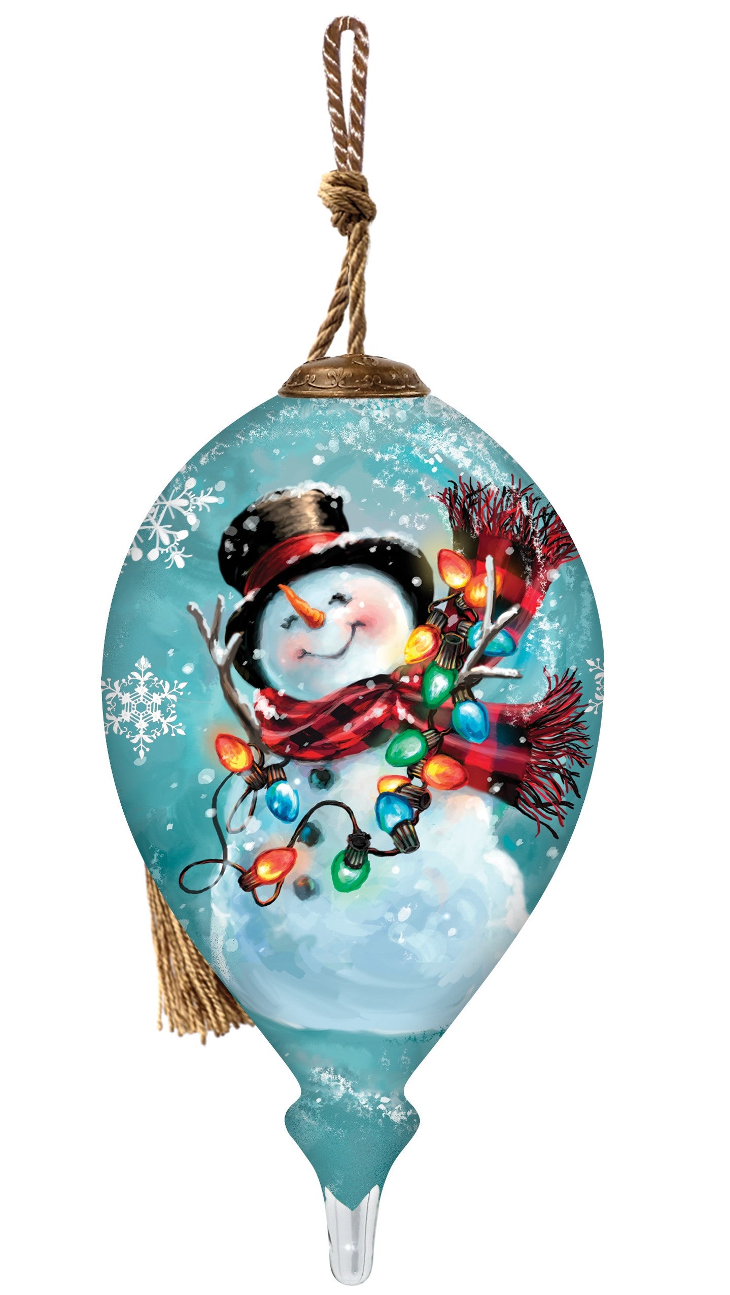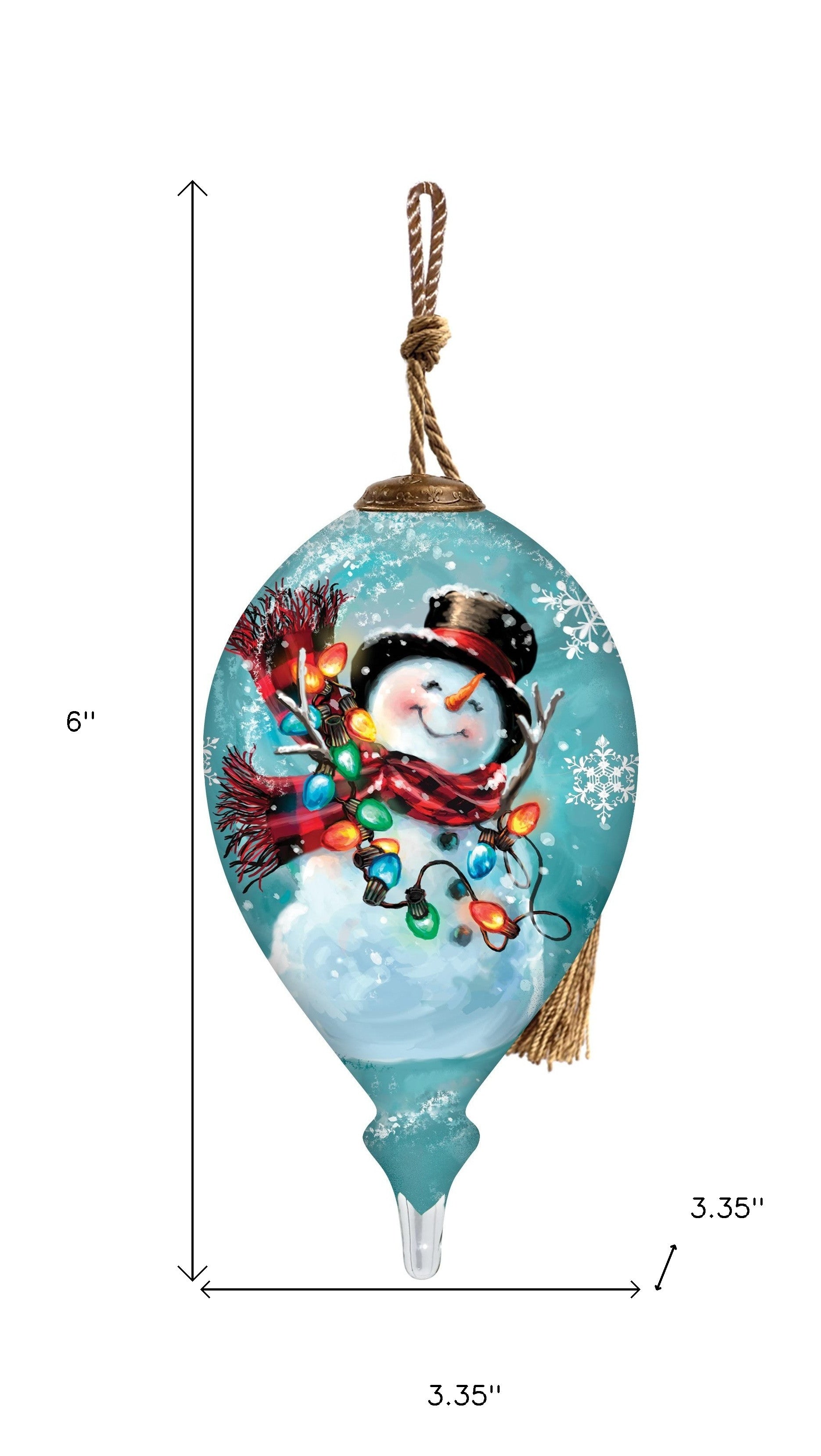 Christmas Joy Snowman Hand Painted Blue Red And White Glass Finial Ornament