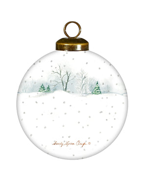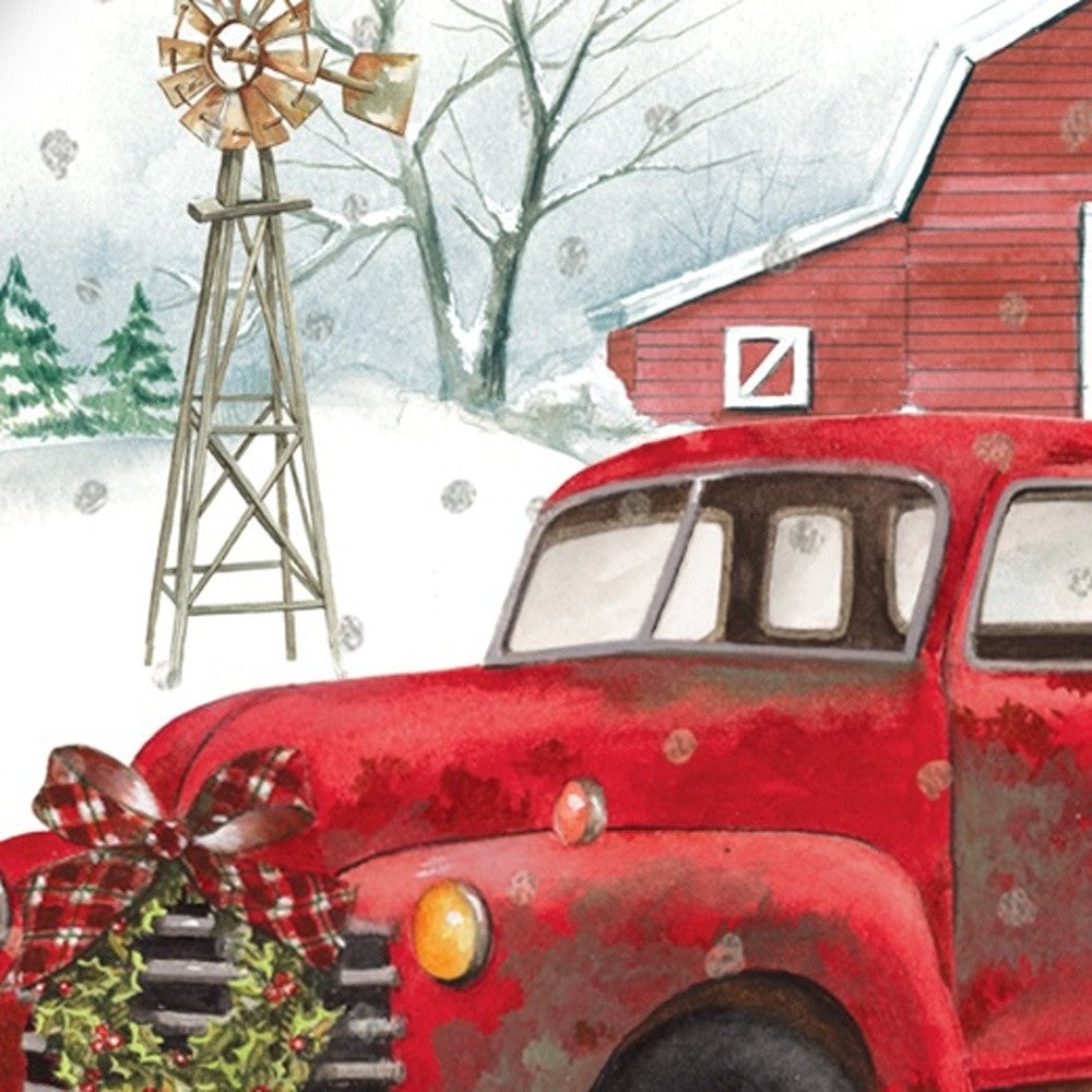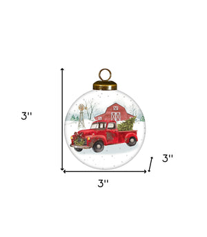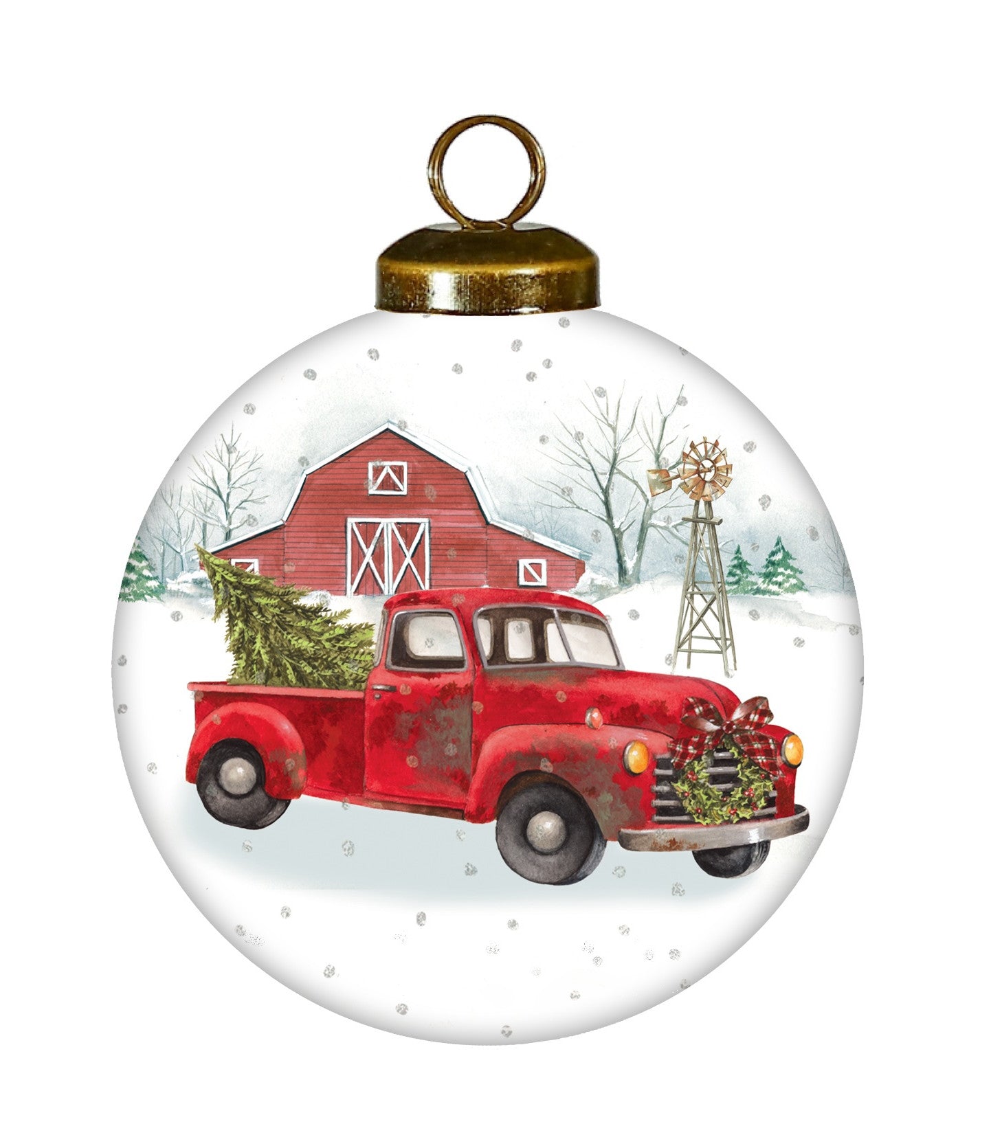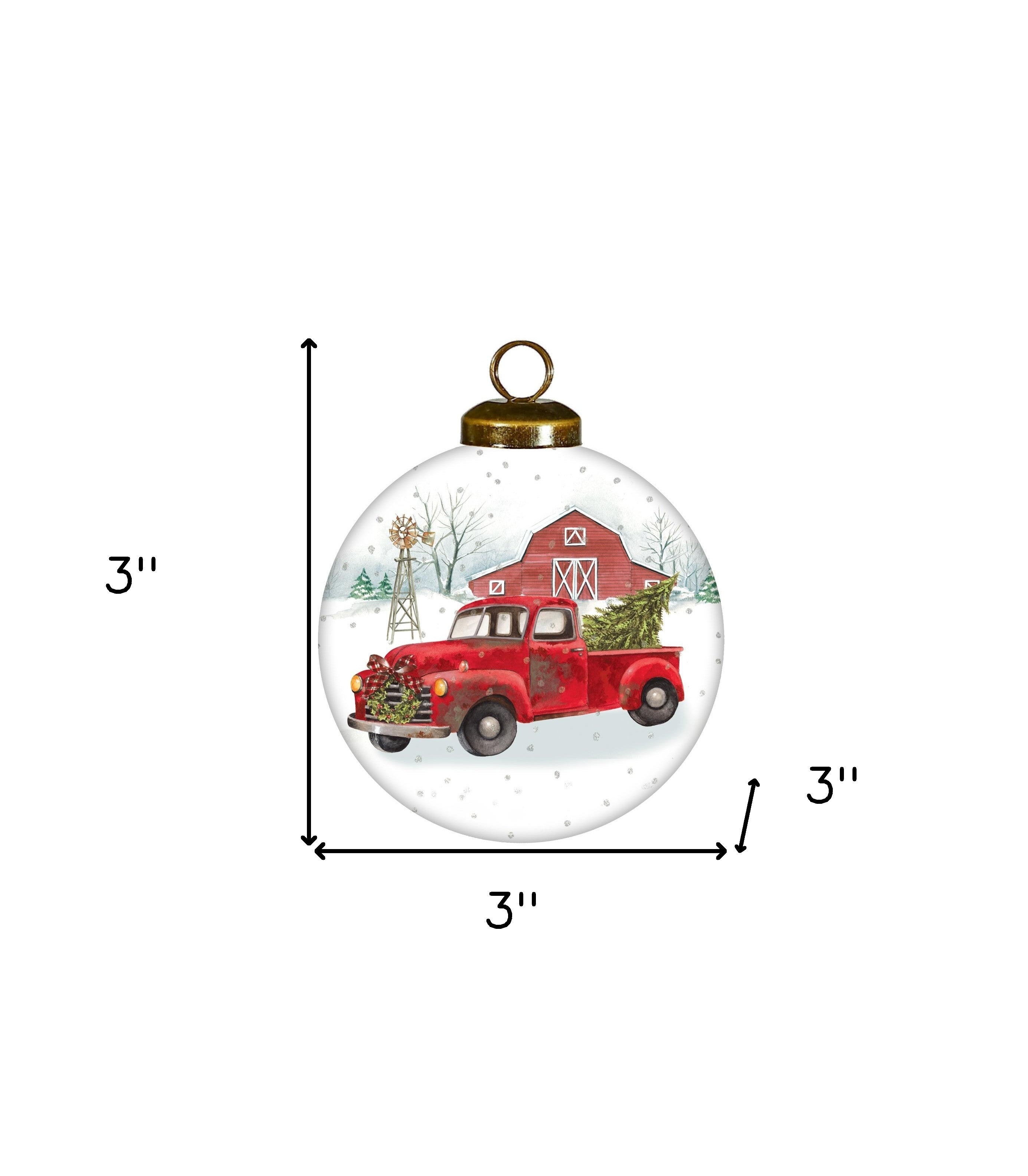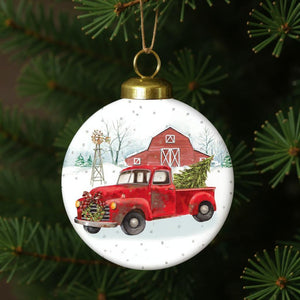 Christmas on the Farm Red Truck Hand Painted Red And White Glass Ball Ornament