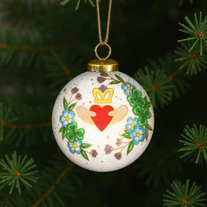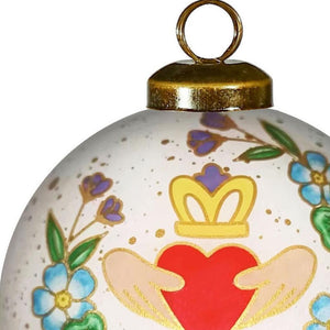 Claddagh Irish Hand Painted Green White And Red Glass Ball Ornament