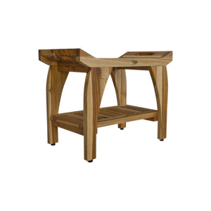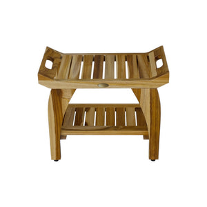 Compact Rectangular Teak Shower Bench With Handles In Natural Finish