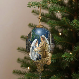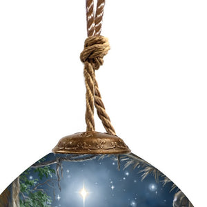 Glory To God Religious Hand Painted Blue Brown And White Glass Finial Ornament