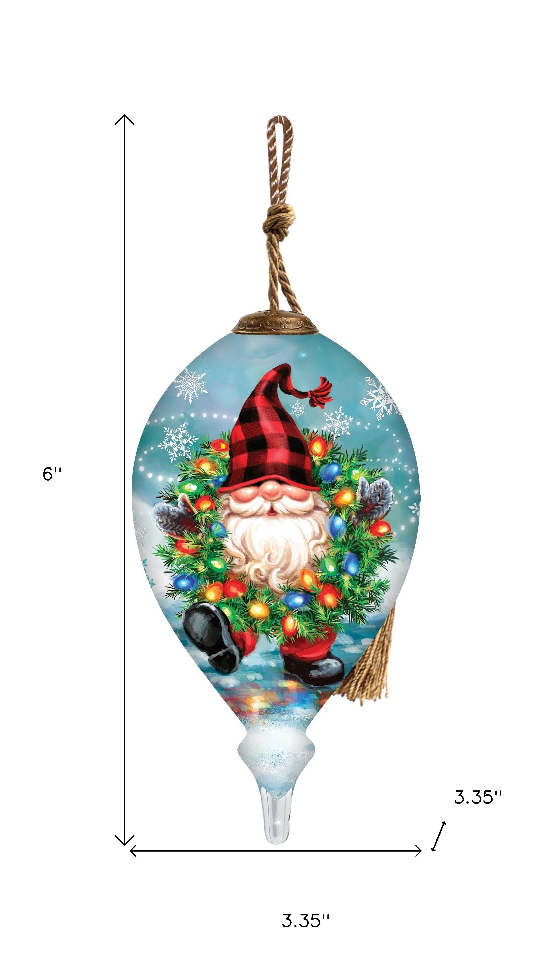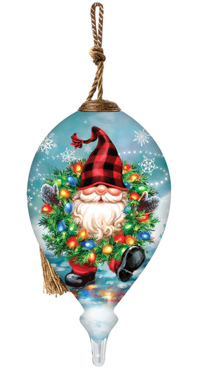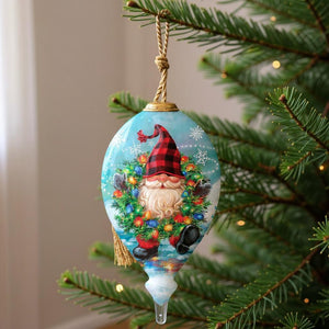 Gnome for Christmas Hand Painted Blue Red And White Glass Finial Ornament