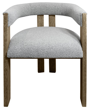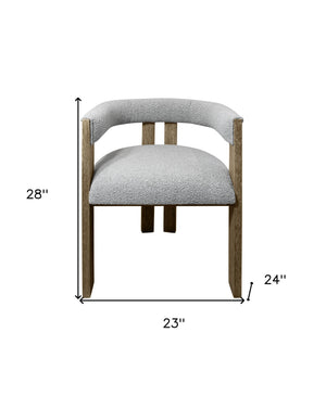 Gray and Brown Upholstered Boucle Open Back Dining Arm Chair