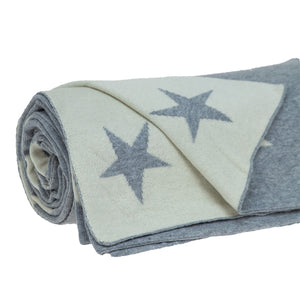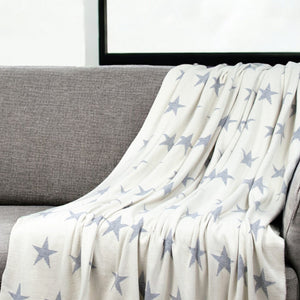 Gray And White Stars Knitted Throw Blanket
