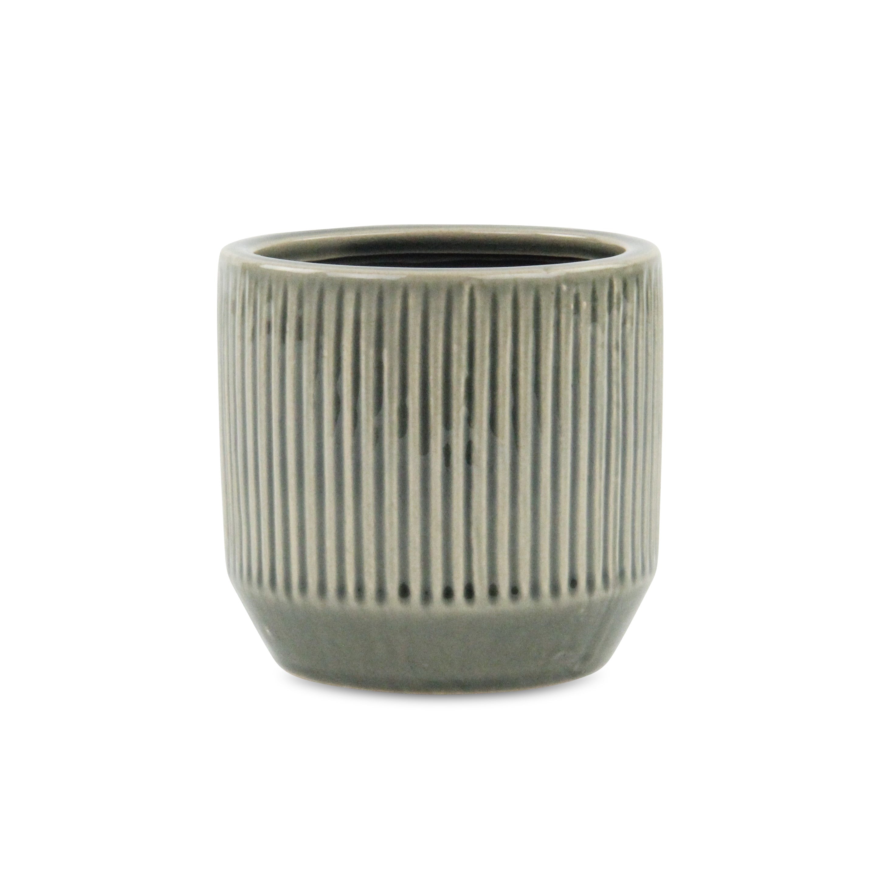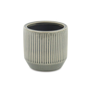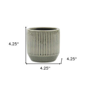 Gray Ceramic 17 Ounce Striped Round Distressed Pot Planter