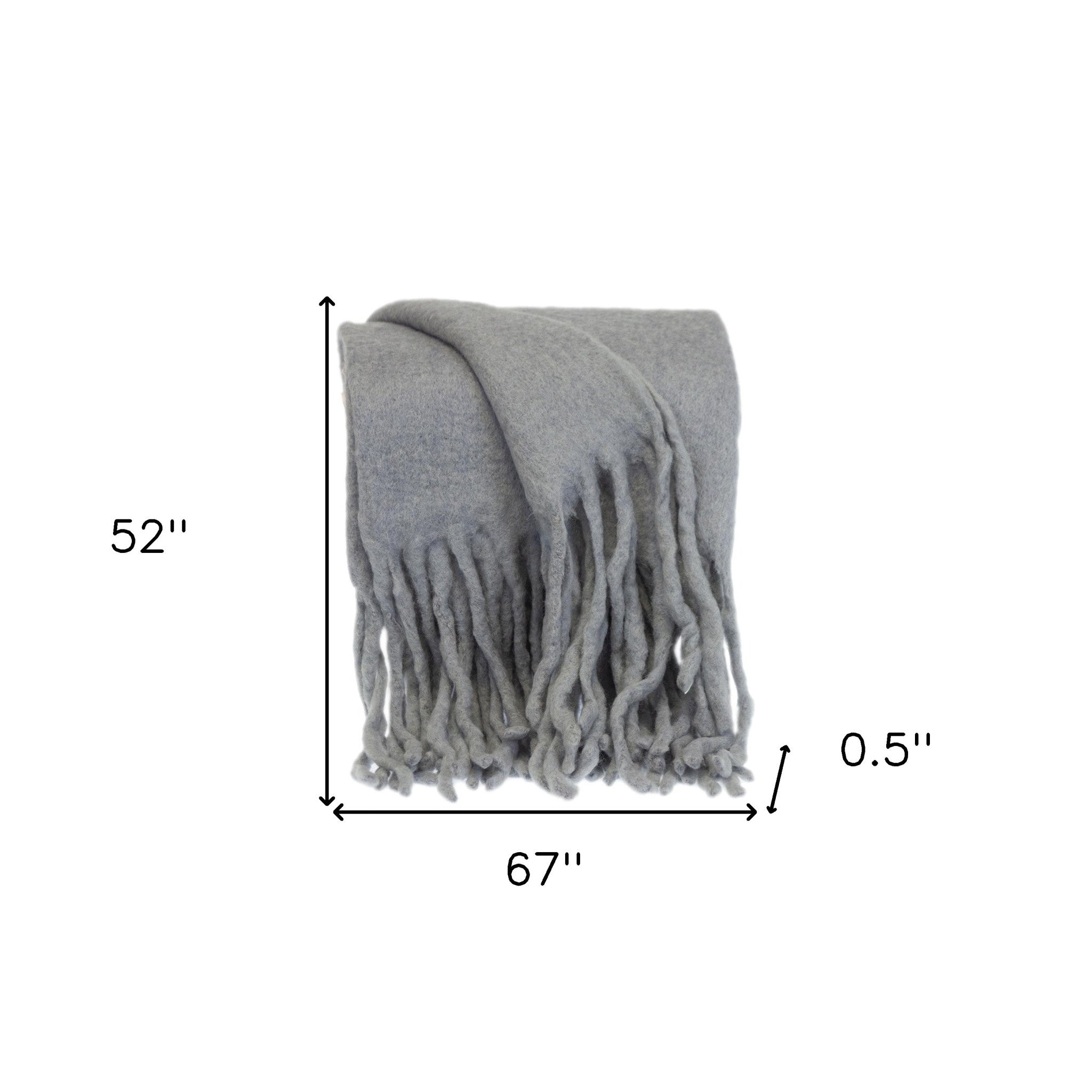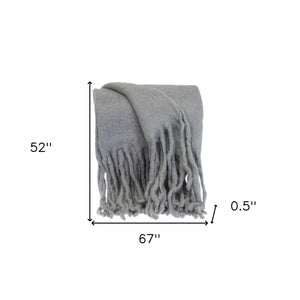 Gray Knitted Acrylic Solid Color Reversable Throw