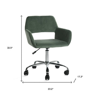 Green and Silver Upholstered and Steel Adjustable Swivel Rolling Office Chair