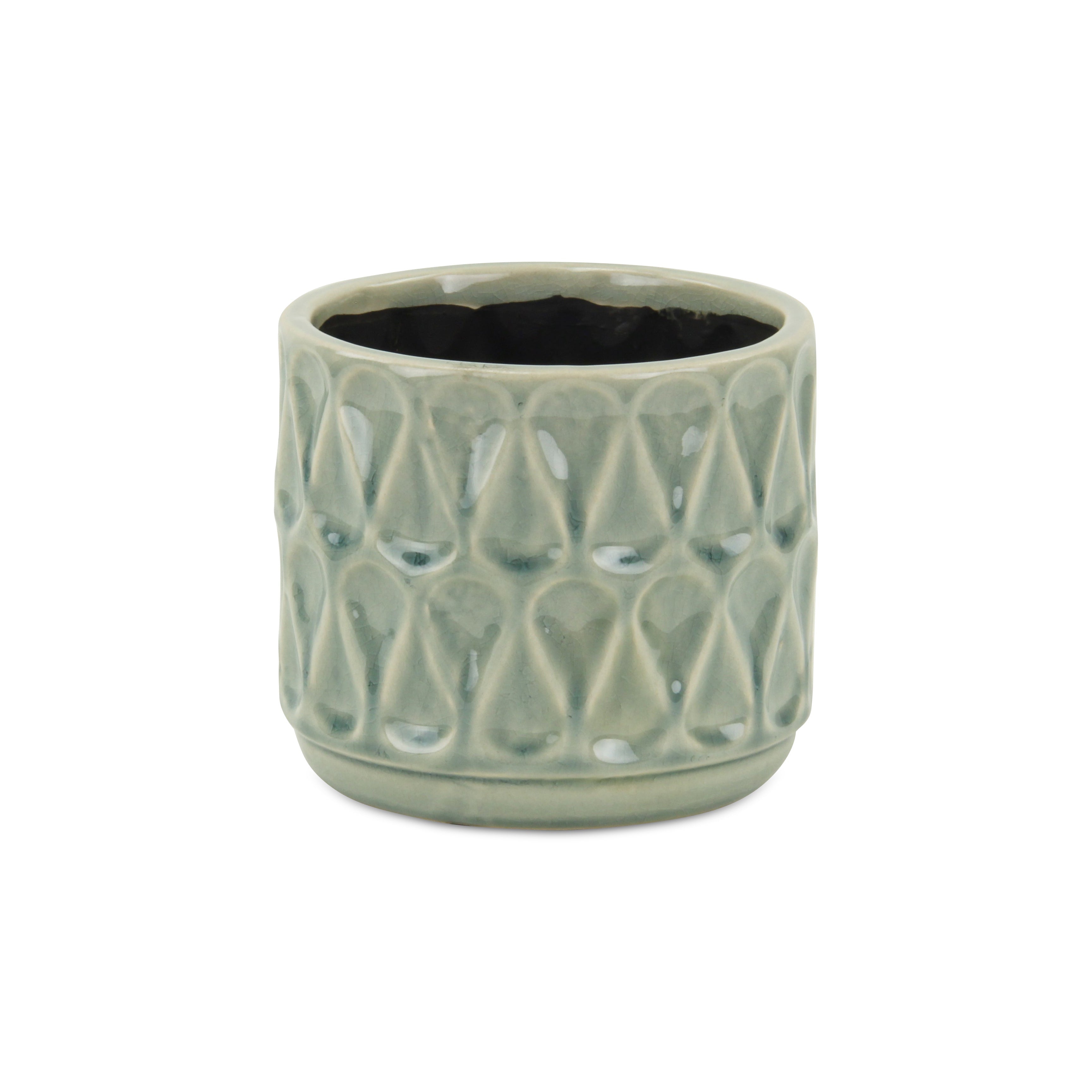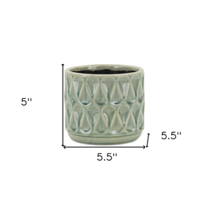 Green Ceramic 10 Ounce Geometric Round Distressed Pot Planter