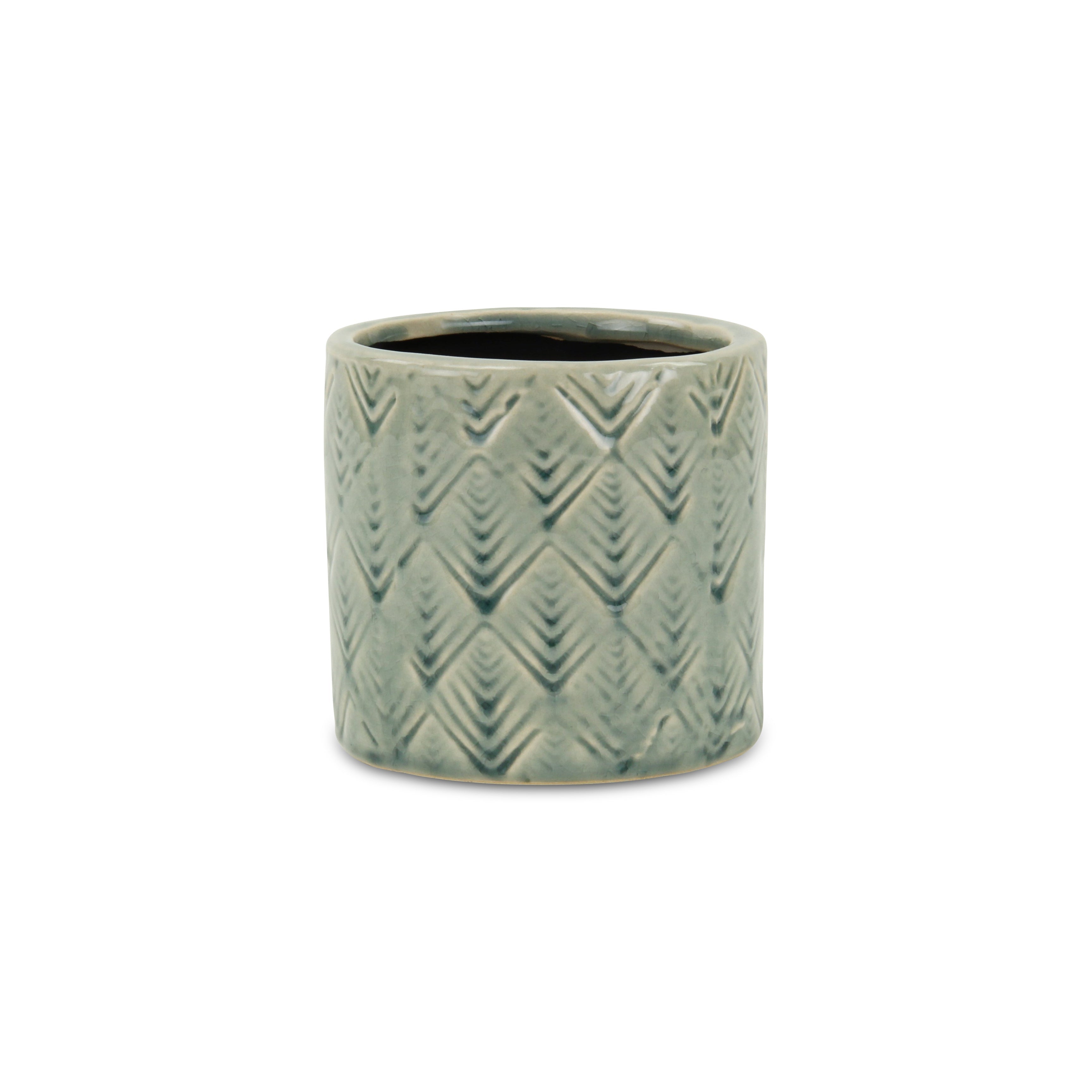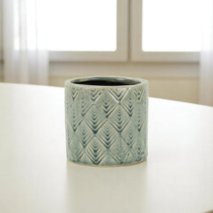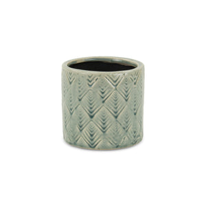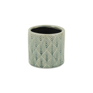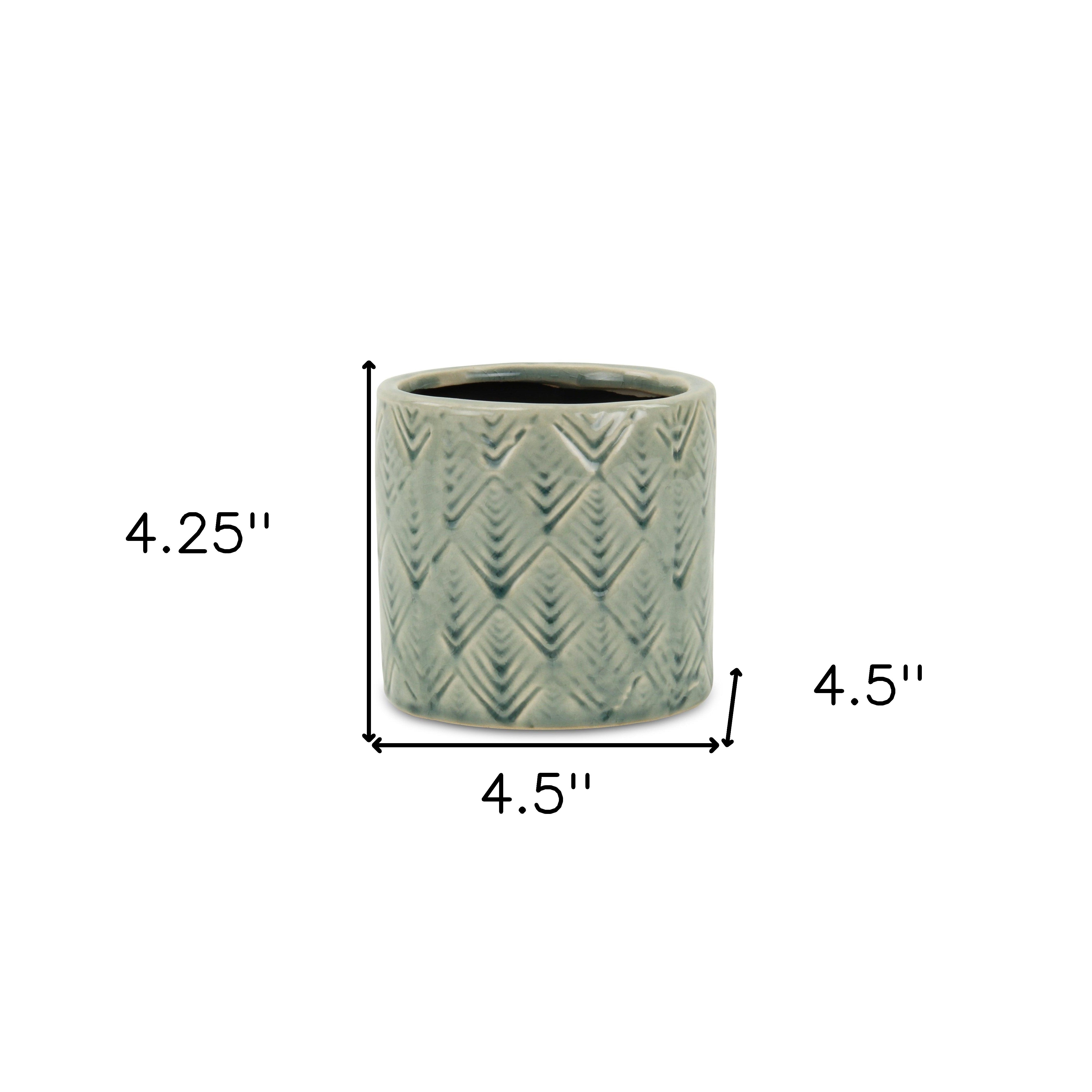 Green Ceramic 16 Ounce Geometric Round Distressed Pot Planter
