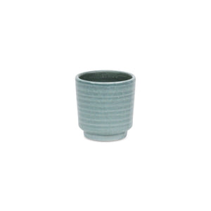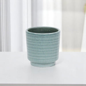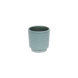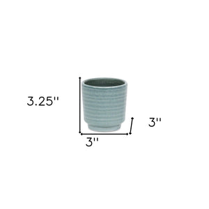 Green Ceramic 6 Ounce Striped Round Distressed Pot Planter