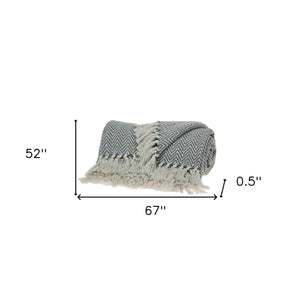 Handloomed Dark Gray Cotton Throw Blanket with Tassels