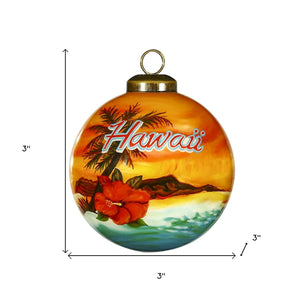 Hawaii Hand Painted Red Blue And Green Glass Ball Ornament