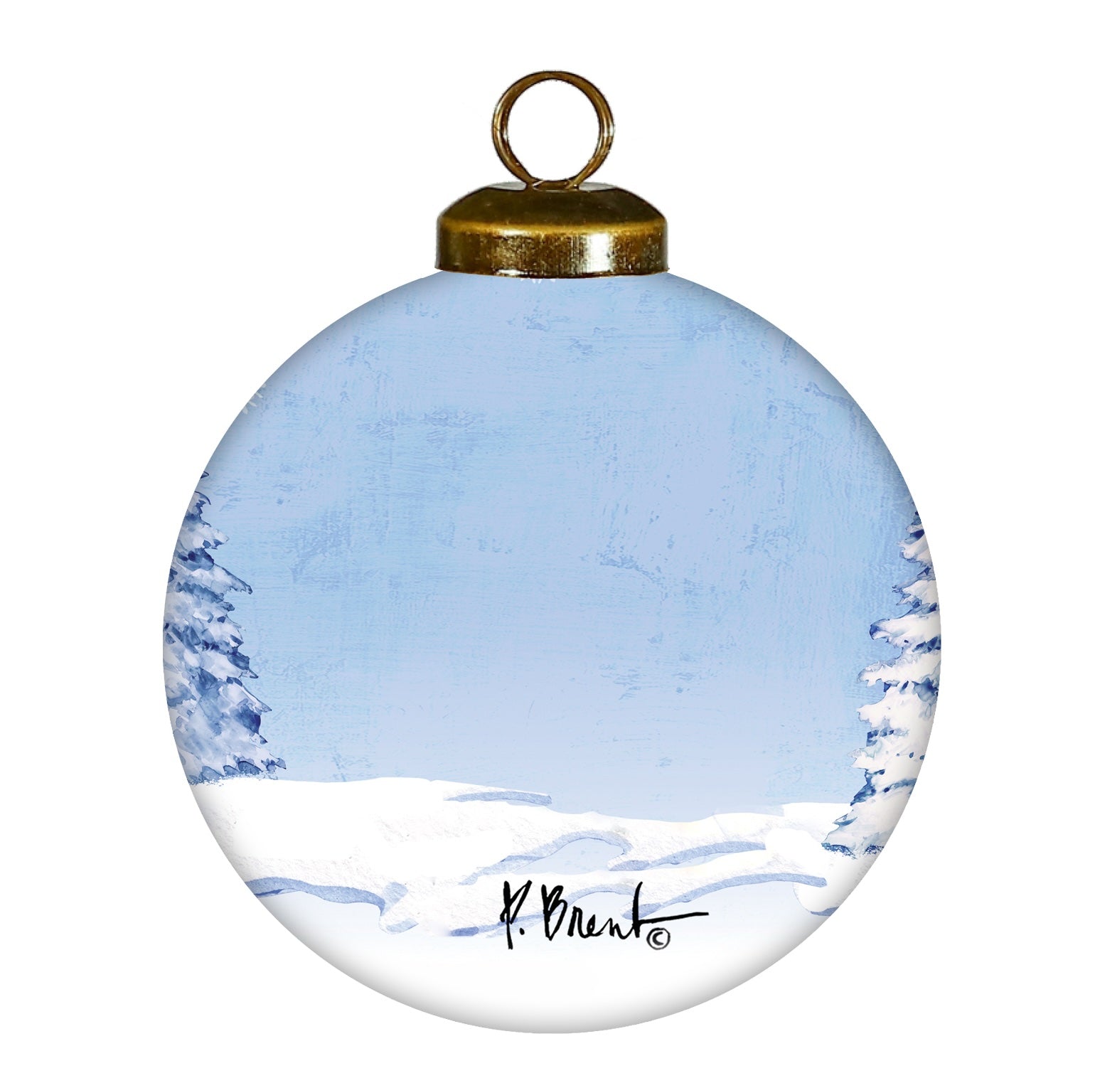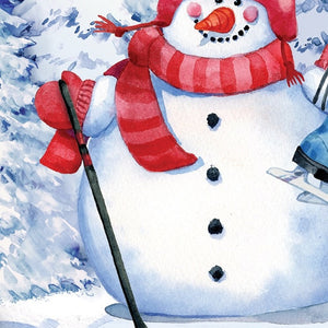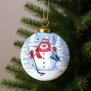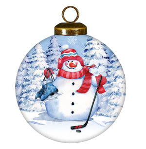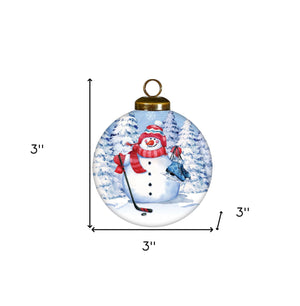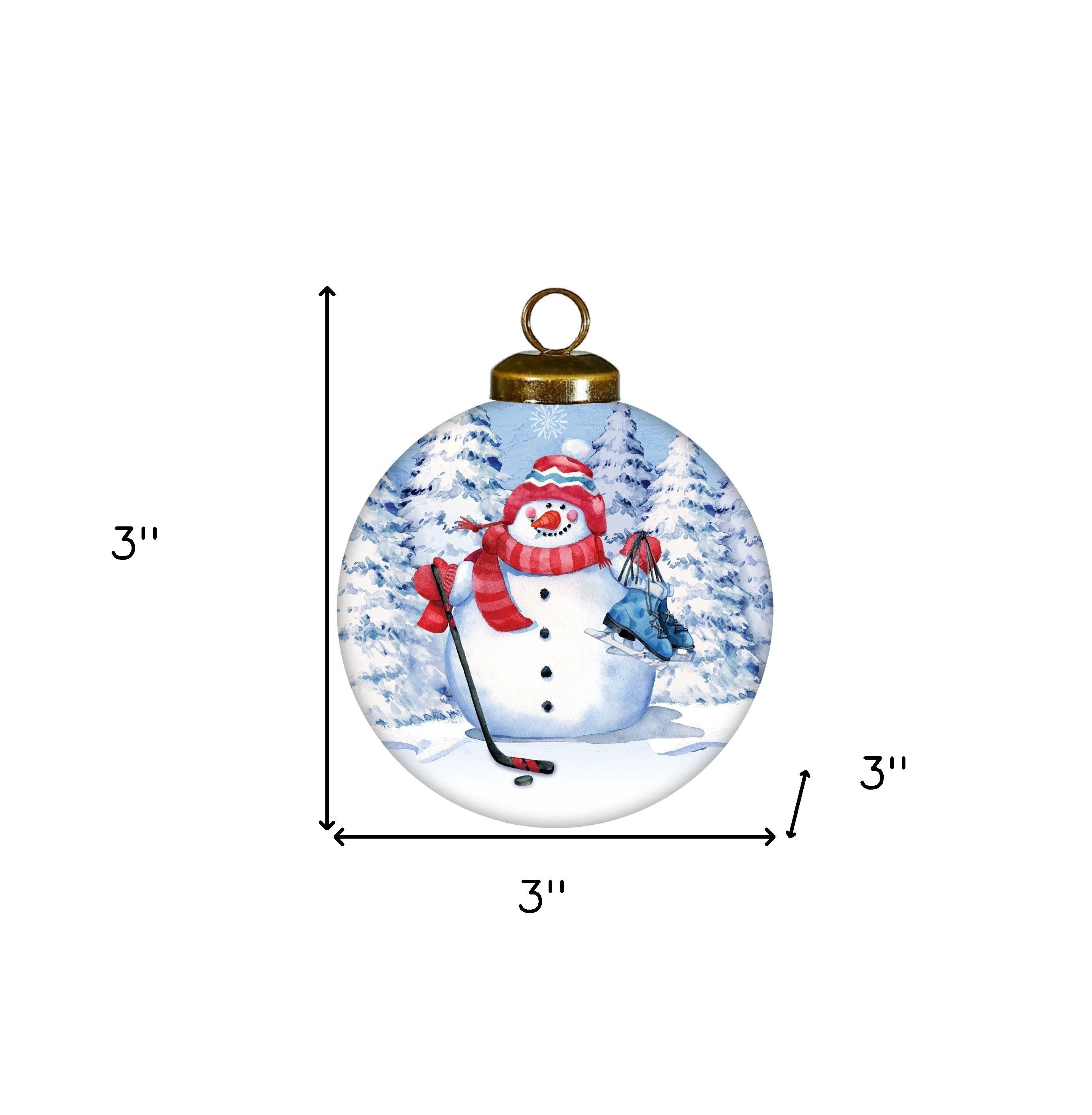 Hockey Snowman Hand Painted White Blue And Red Glass Ball Ornament