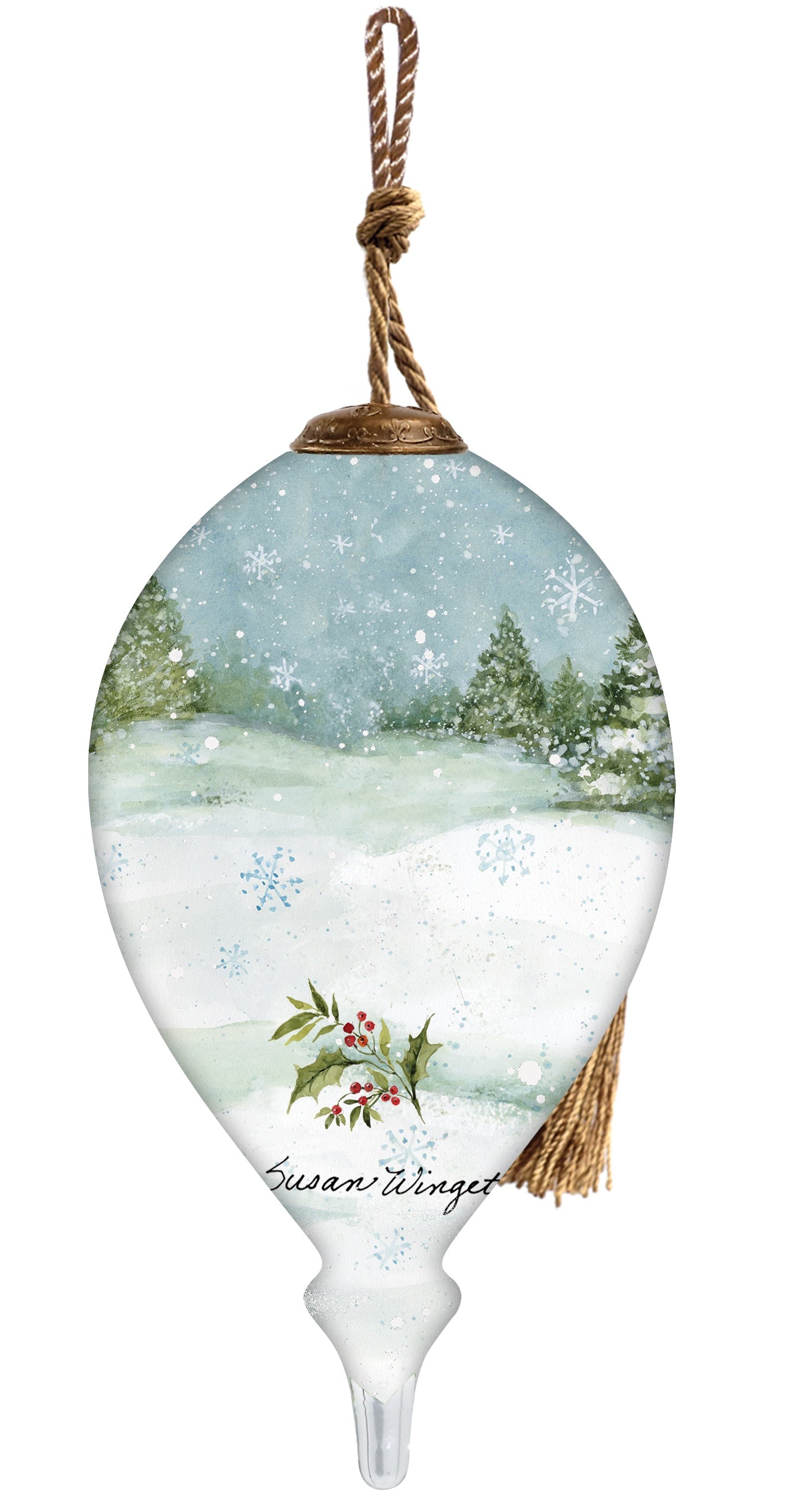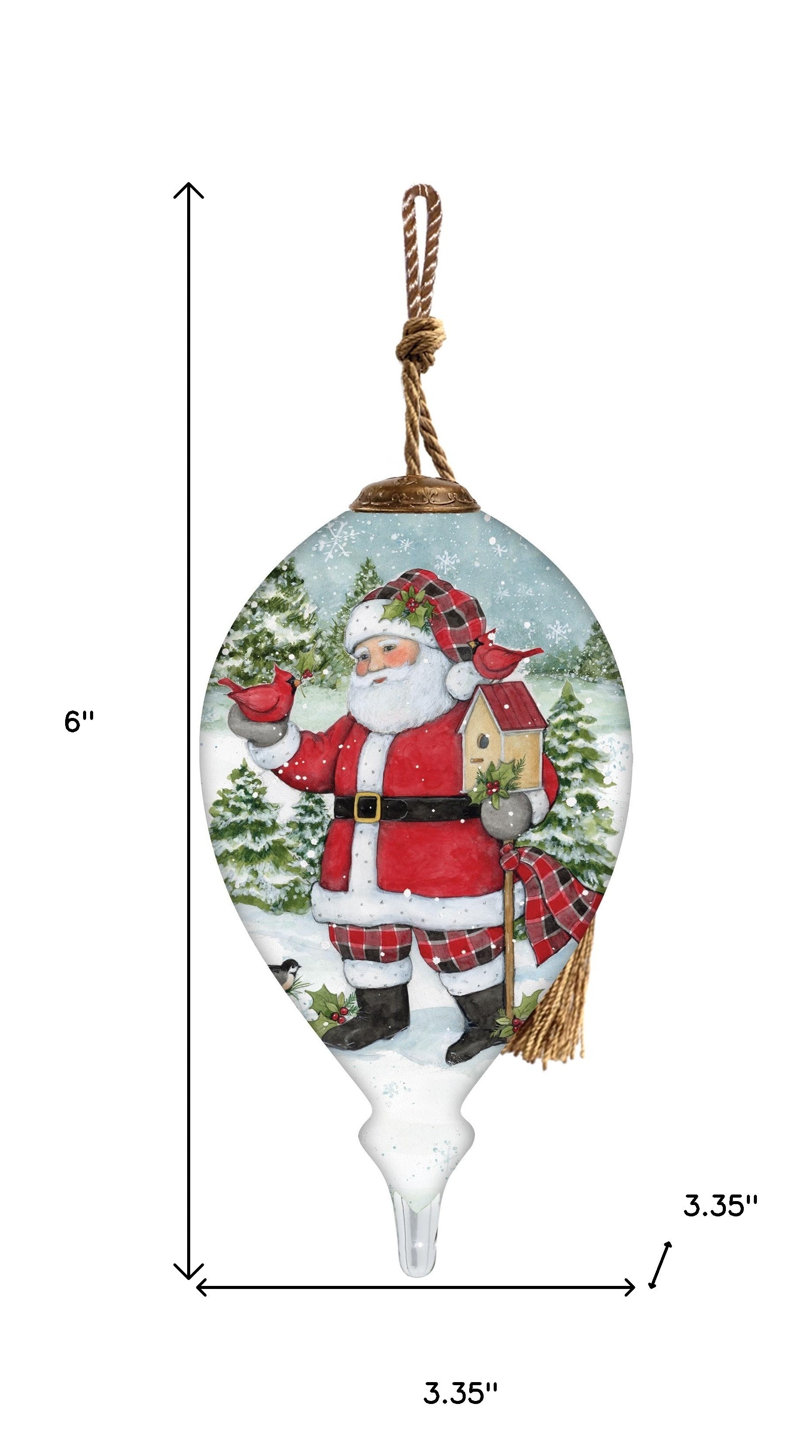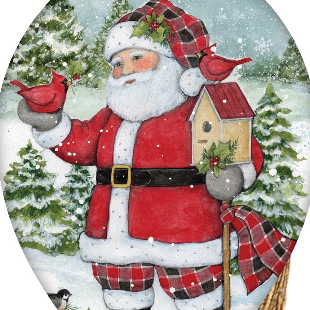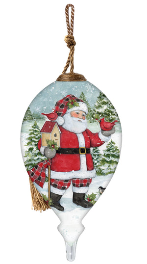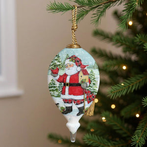 Holiday Lodge Santa Hand Painted Green Red And White Glass Finial Ornament