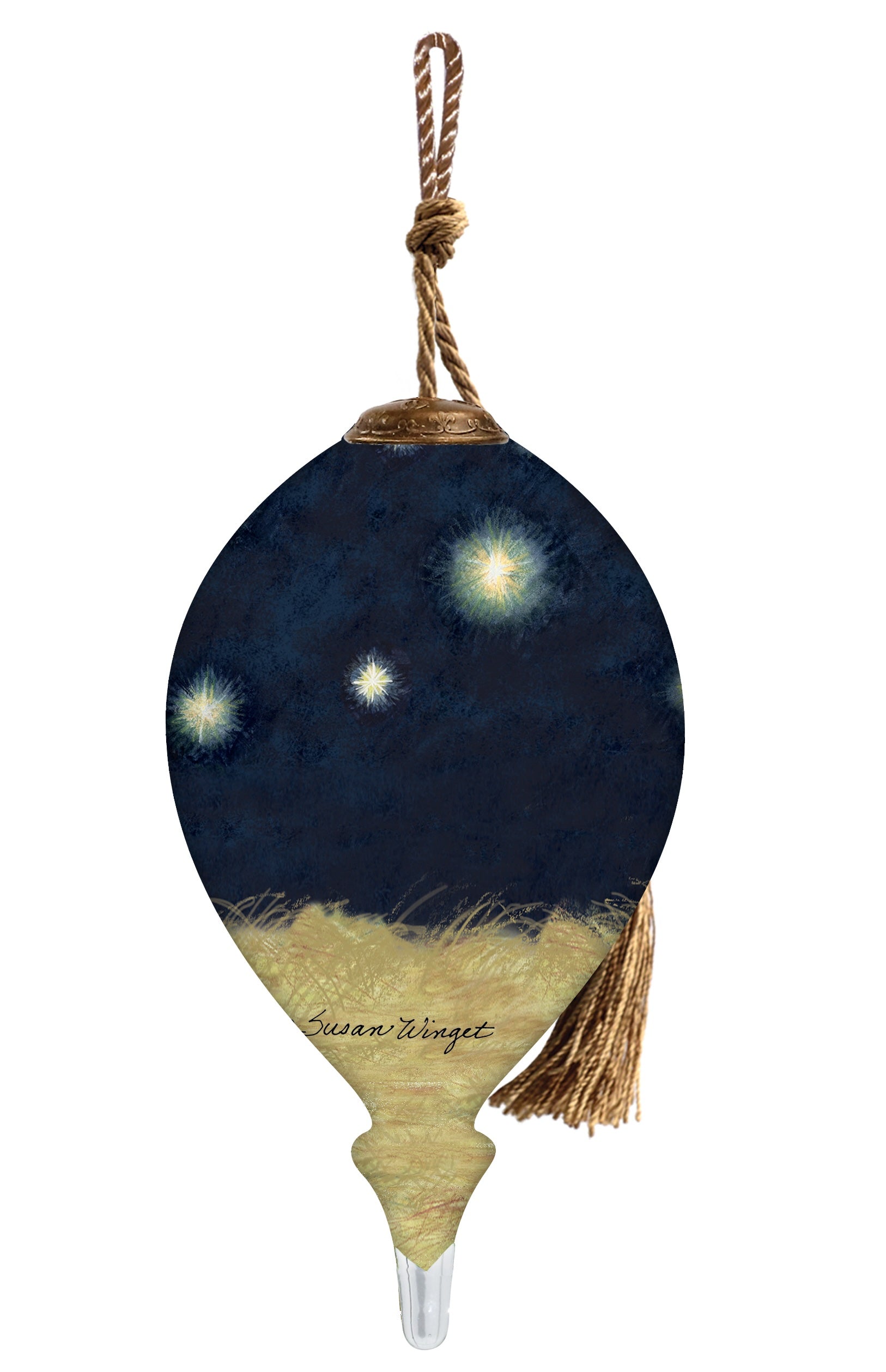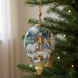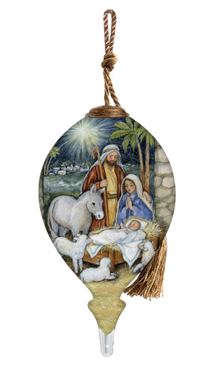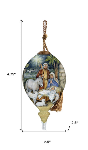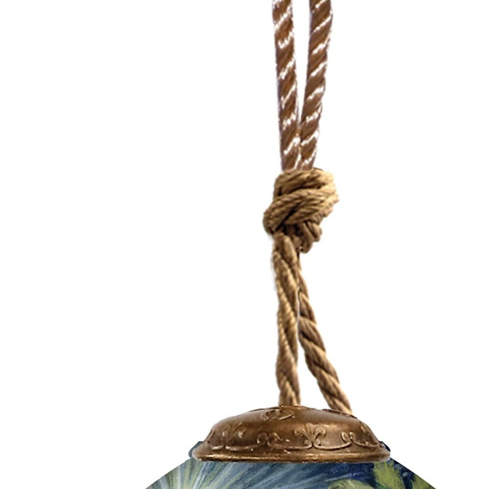 Holy Night Hand Painted Blue White And Green Glass Finial Ornament