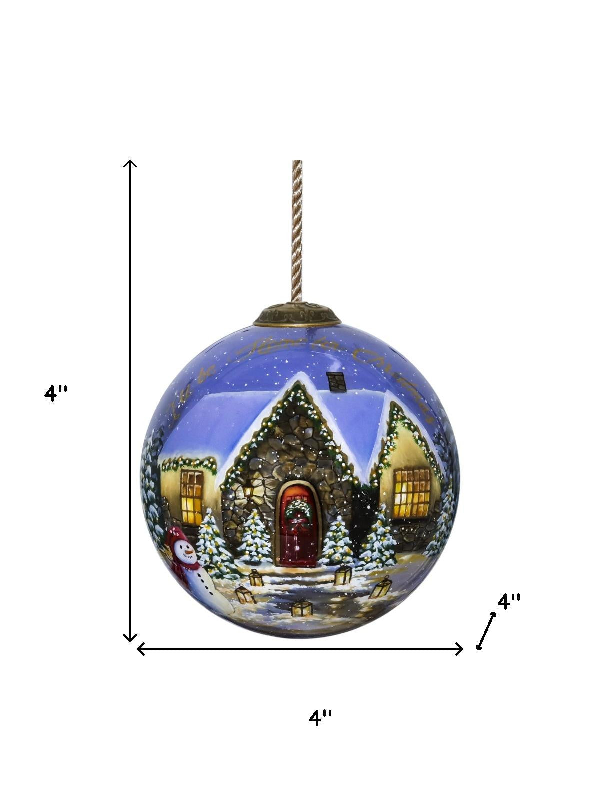 Home For Christmas Hand Painted Mouth Blown Glass Ornament