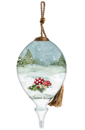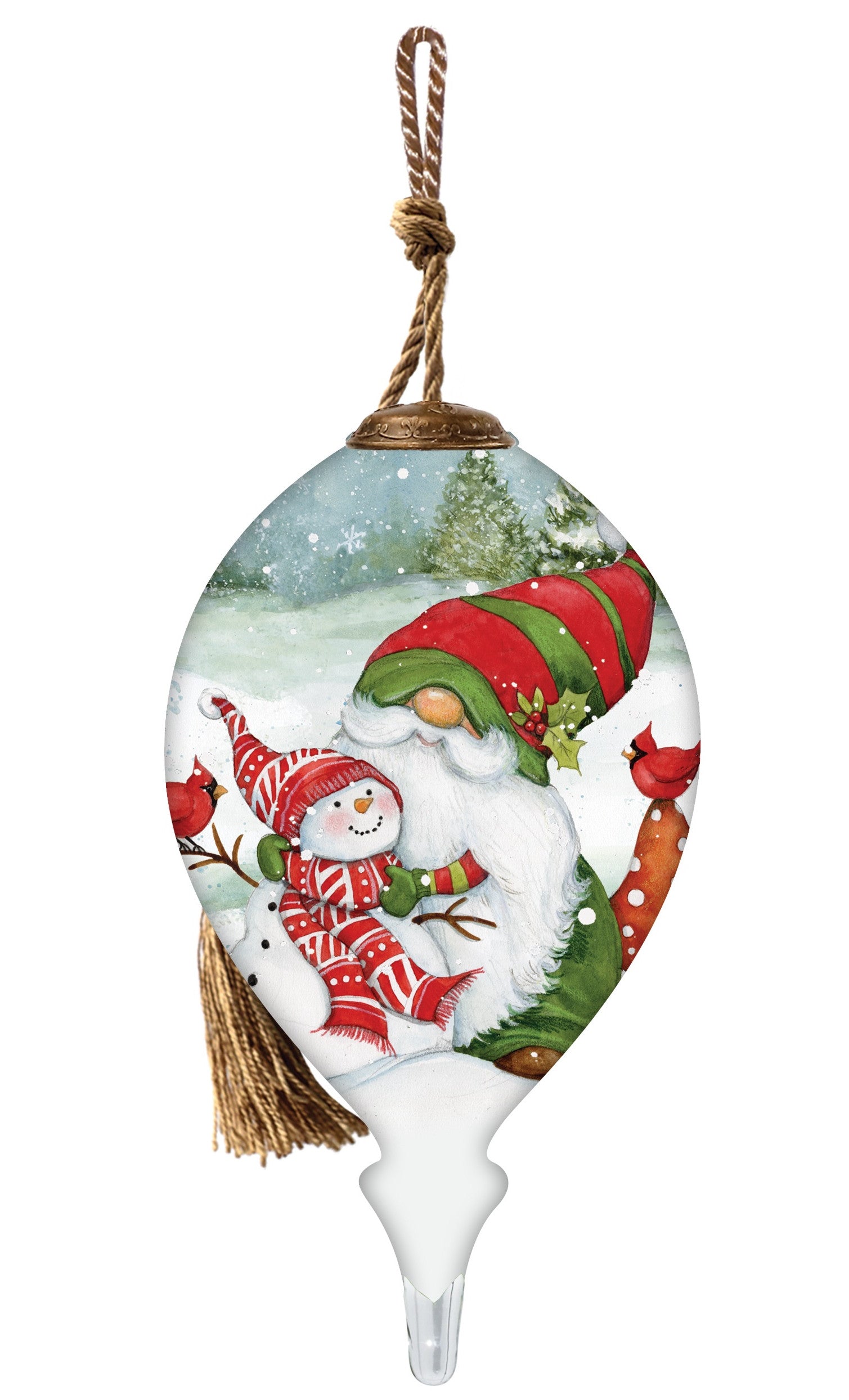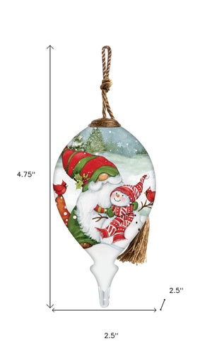 I Love You Gnome Hand Painted Green Red And White Glass Finial Ornament
