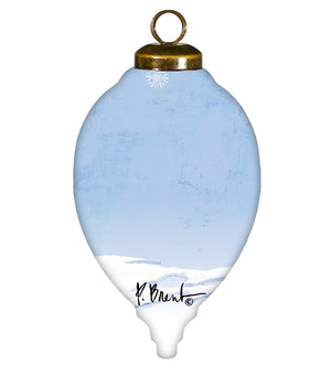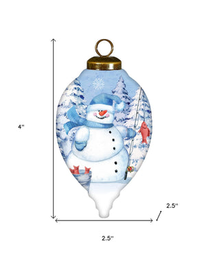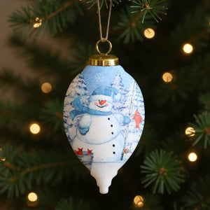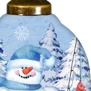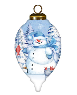Ice Fishing Snowman Hand Painted White Blue And Red Glass Finial Ornament