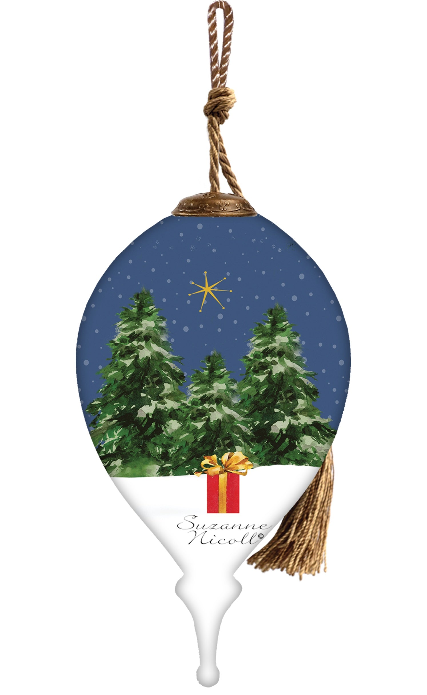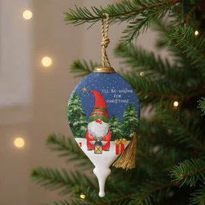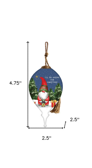 Iell Be Gnome For Christmas Hand Painted Blue White And Red Glass Finial Ornament