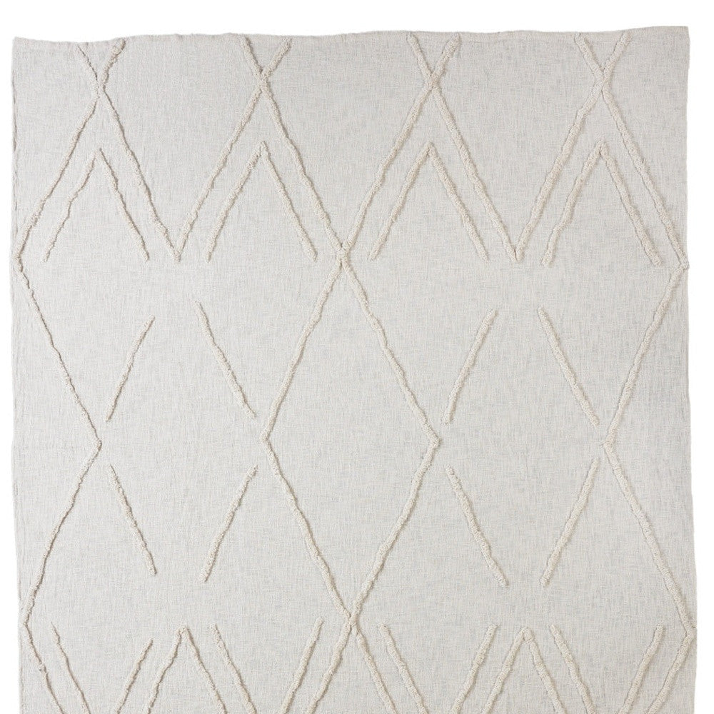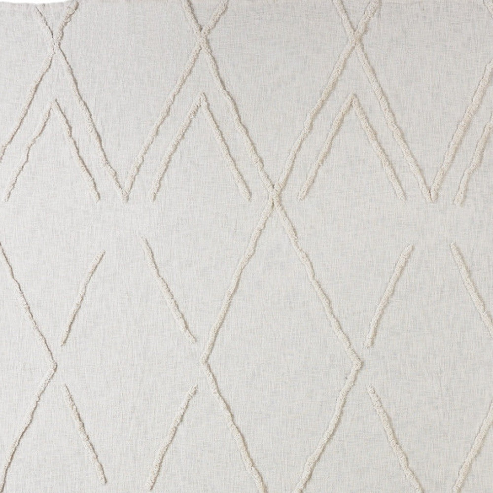 Ivory Geometric King Cotton Coverlet With Fringe