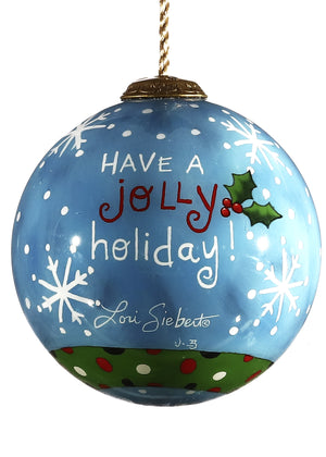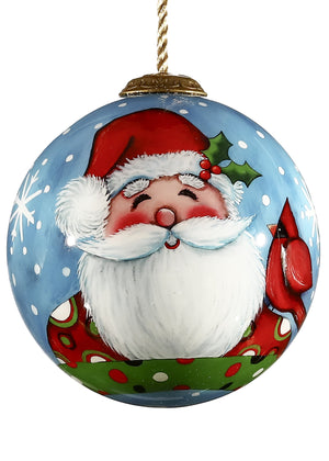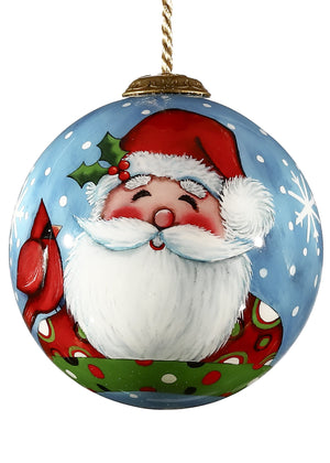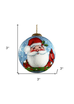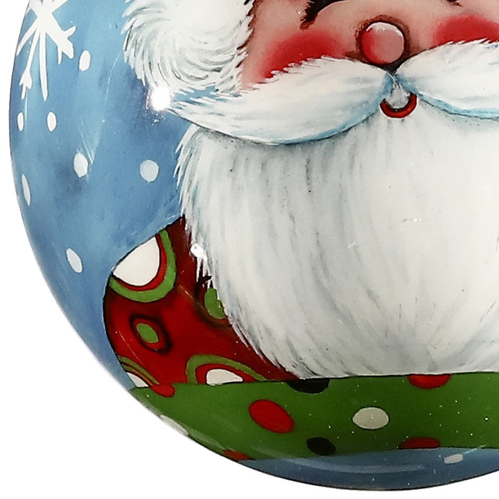 Jolly Holiday Santa Hand Painted Blue White And Red Glass Ball Ornament