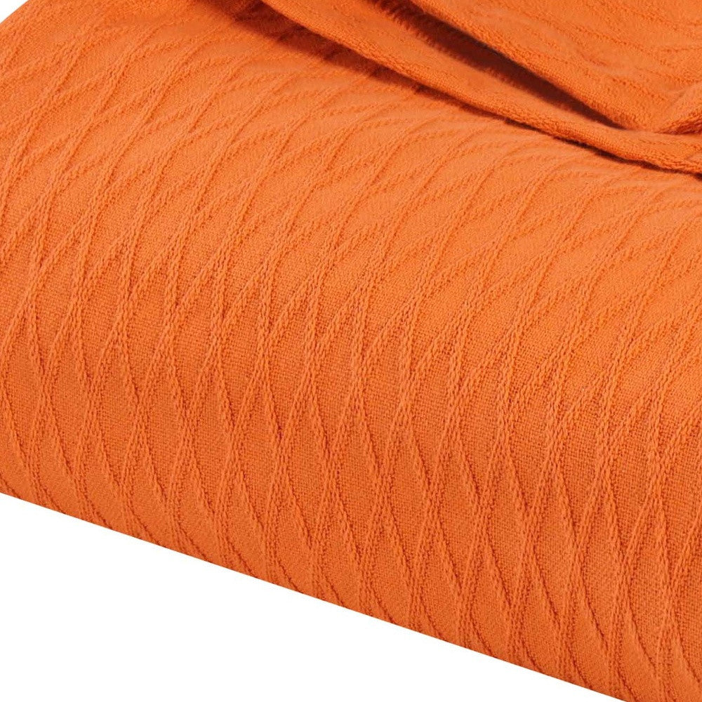 King Burnt Orange Cotton Woven Geometric Blanket