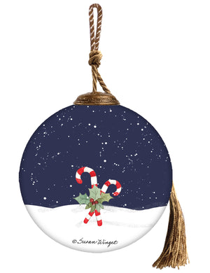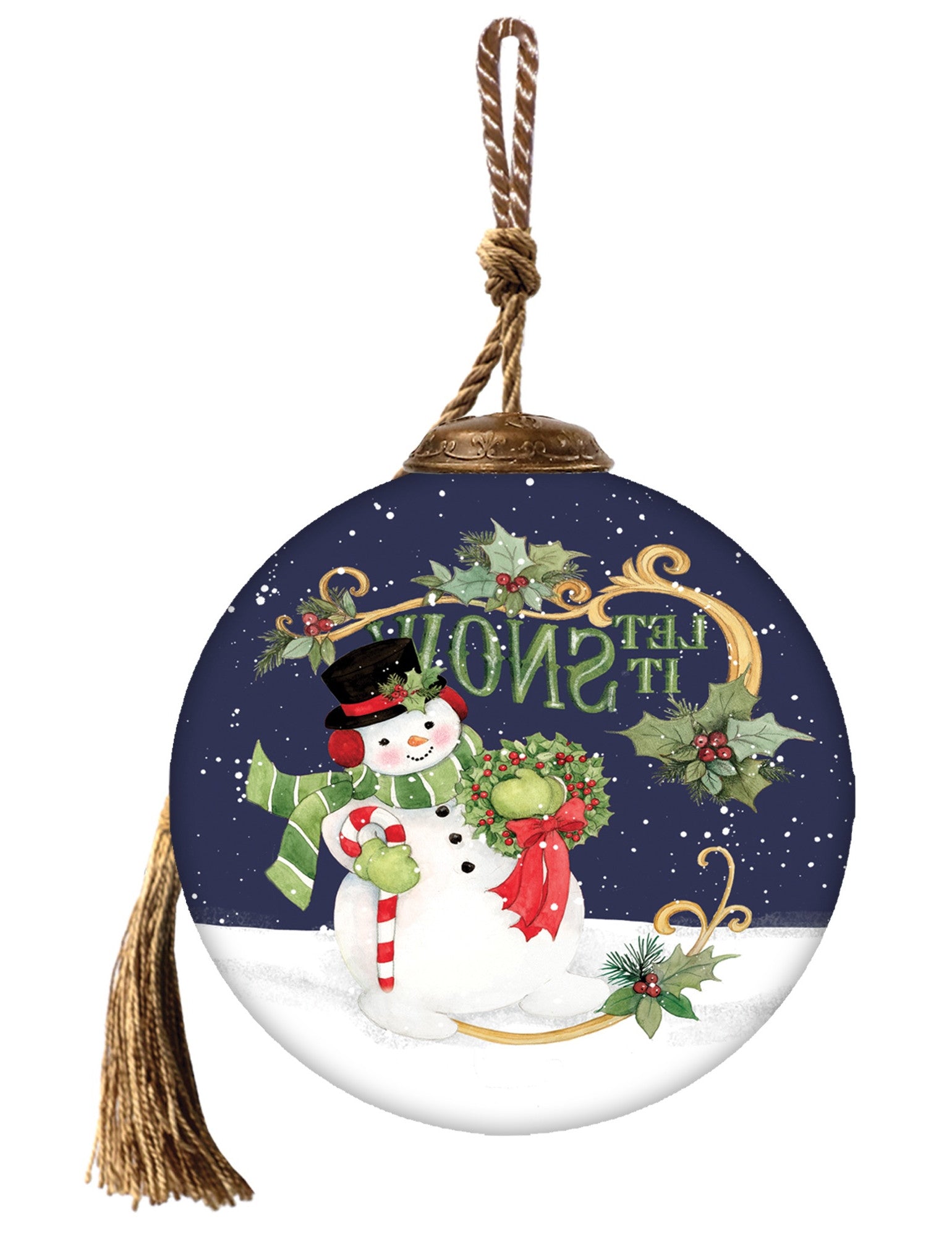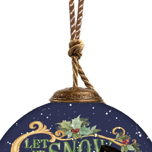 Let It Snow Hand Painted Blue White And Red Glass Ball Ornament