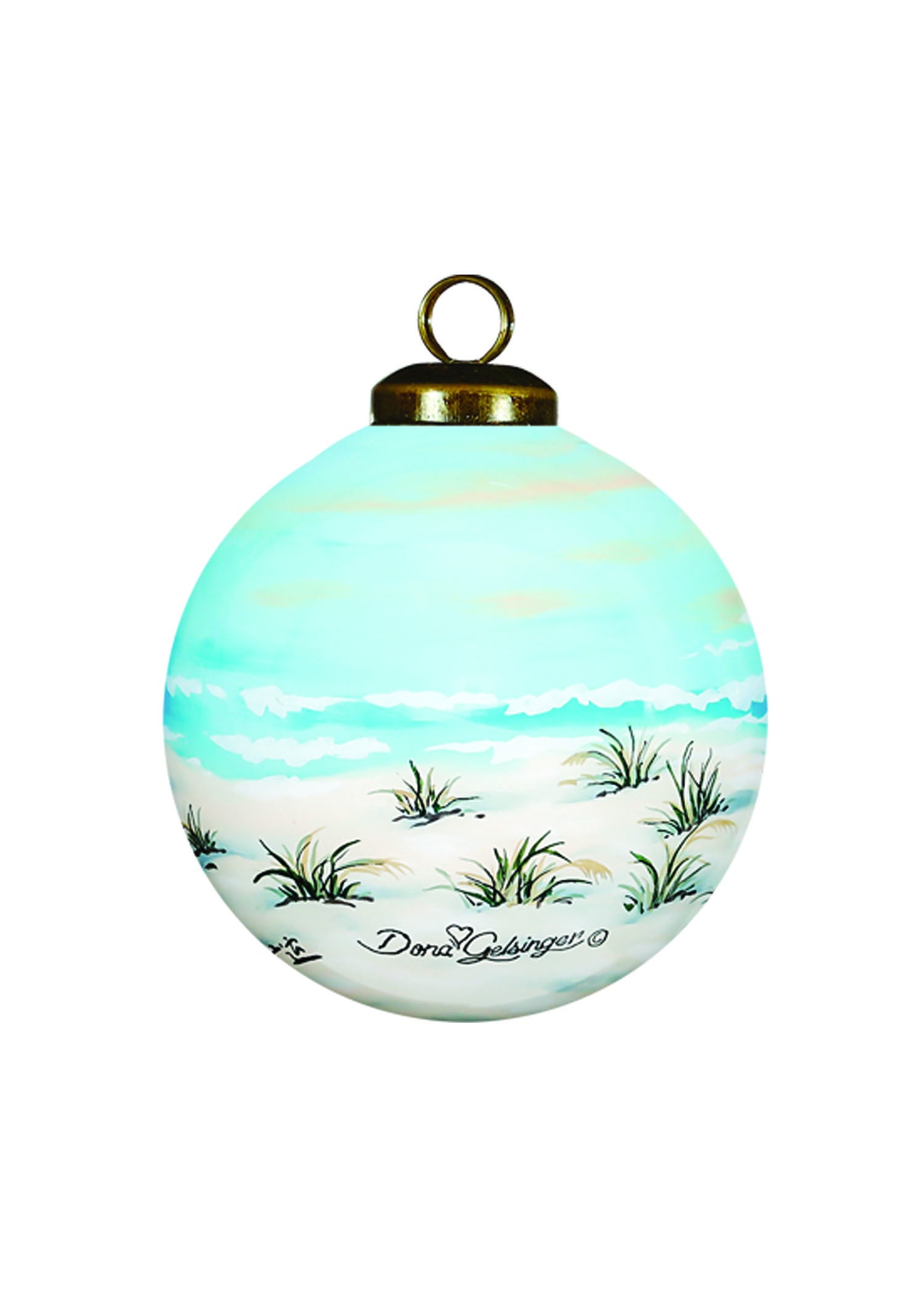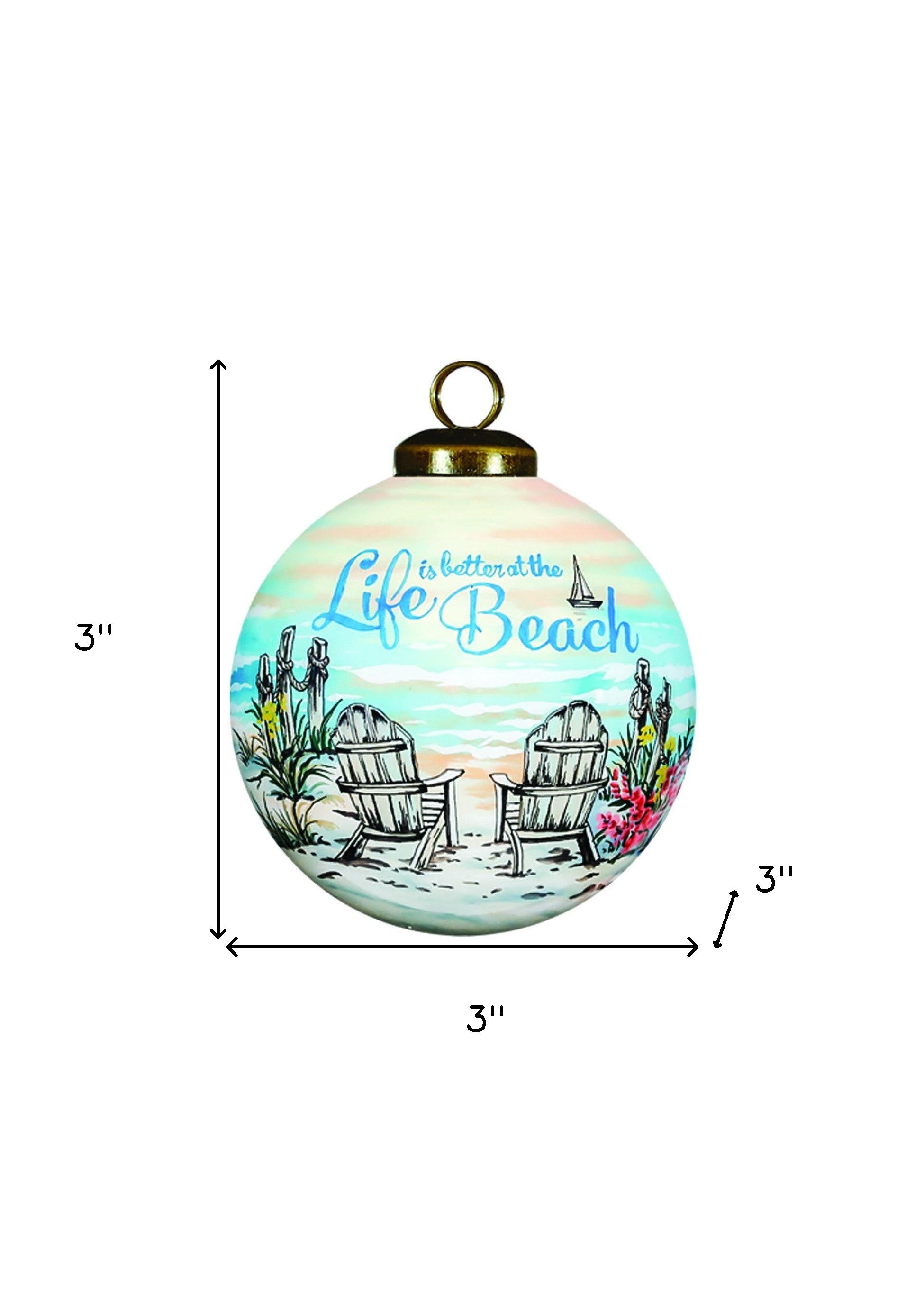 Life is better at the beach Hand Painted Blue Green And Black Glass Ball Ornament