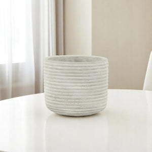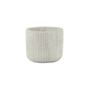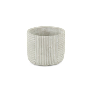 Light Gray Cement 39 Ounce Striped Round Distressed Pot Planter