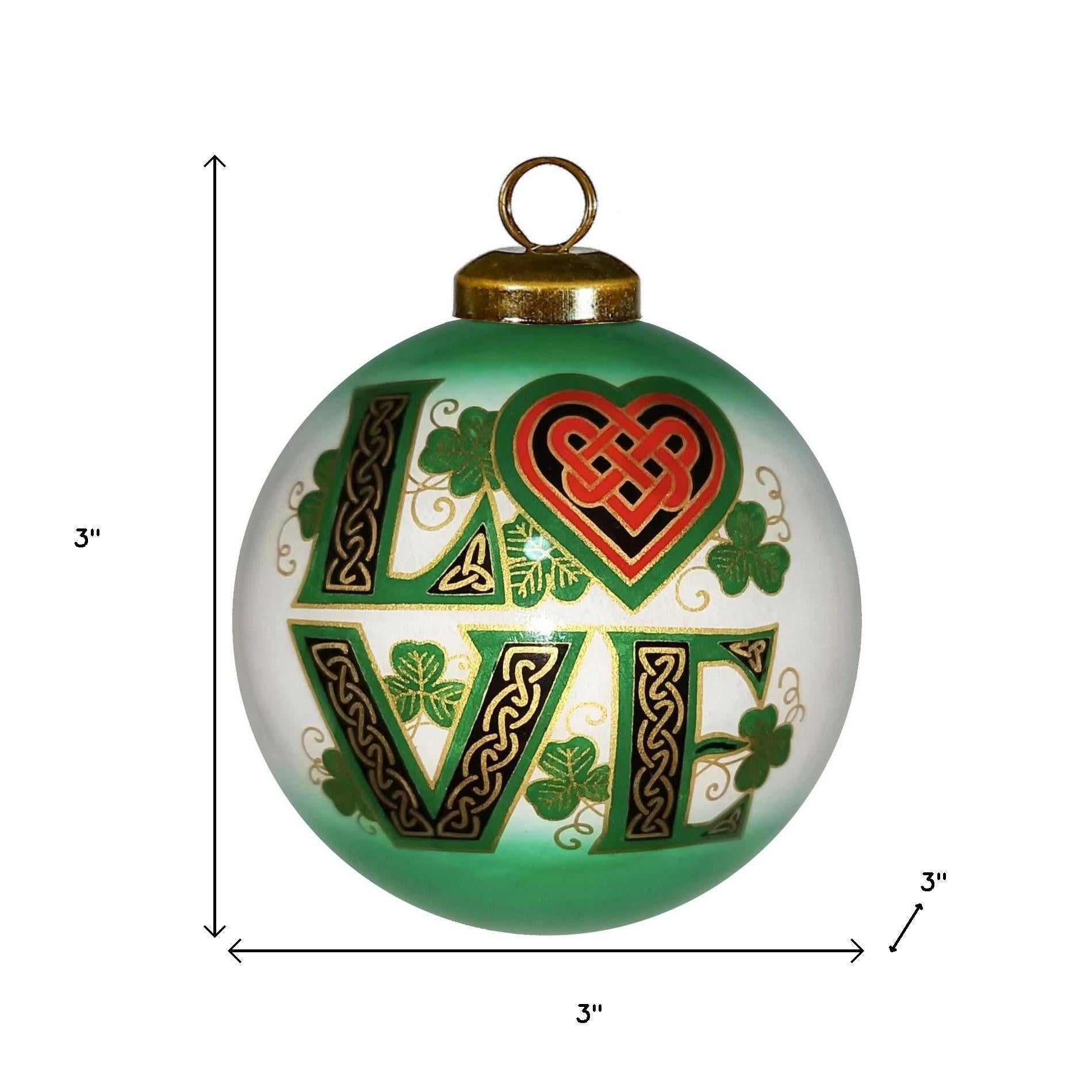 Love Irish Hand Painted Green White And Red Glass Ball Ornament