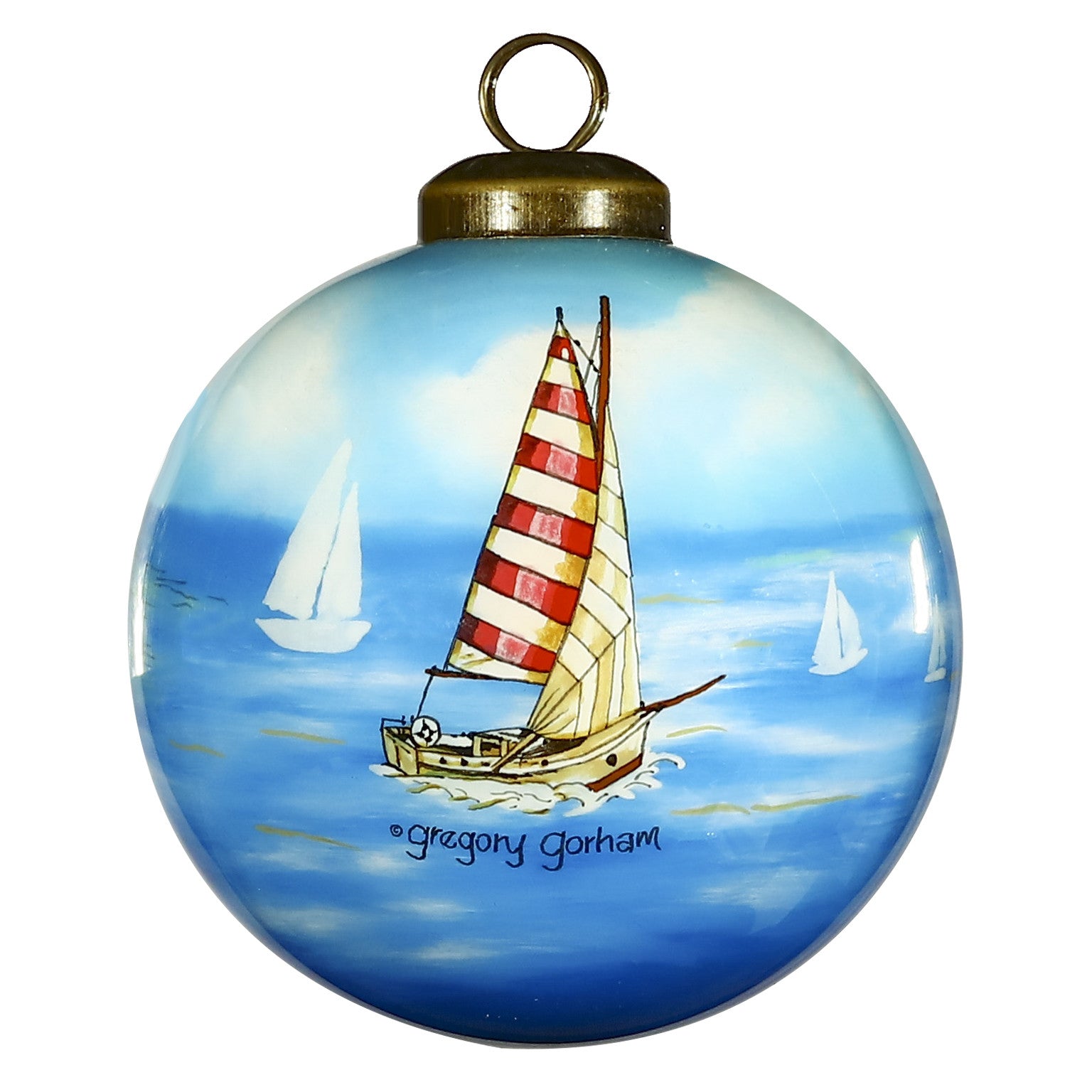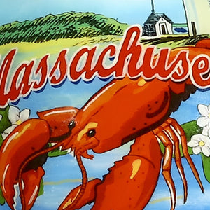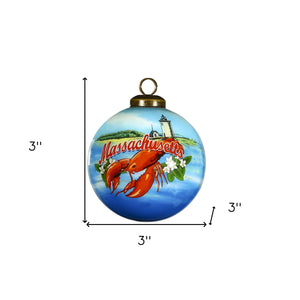 Massachusetts Hand Painted Blue Red And Green Glass Ball Ornament