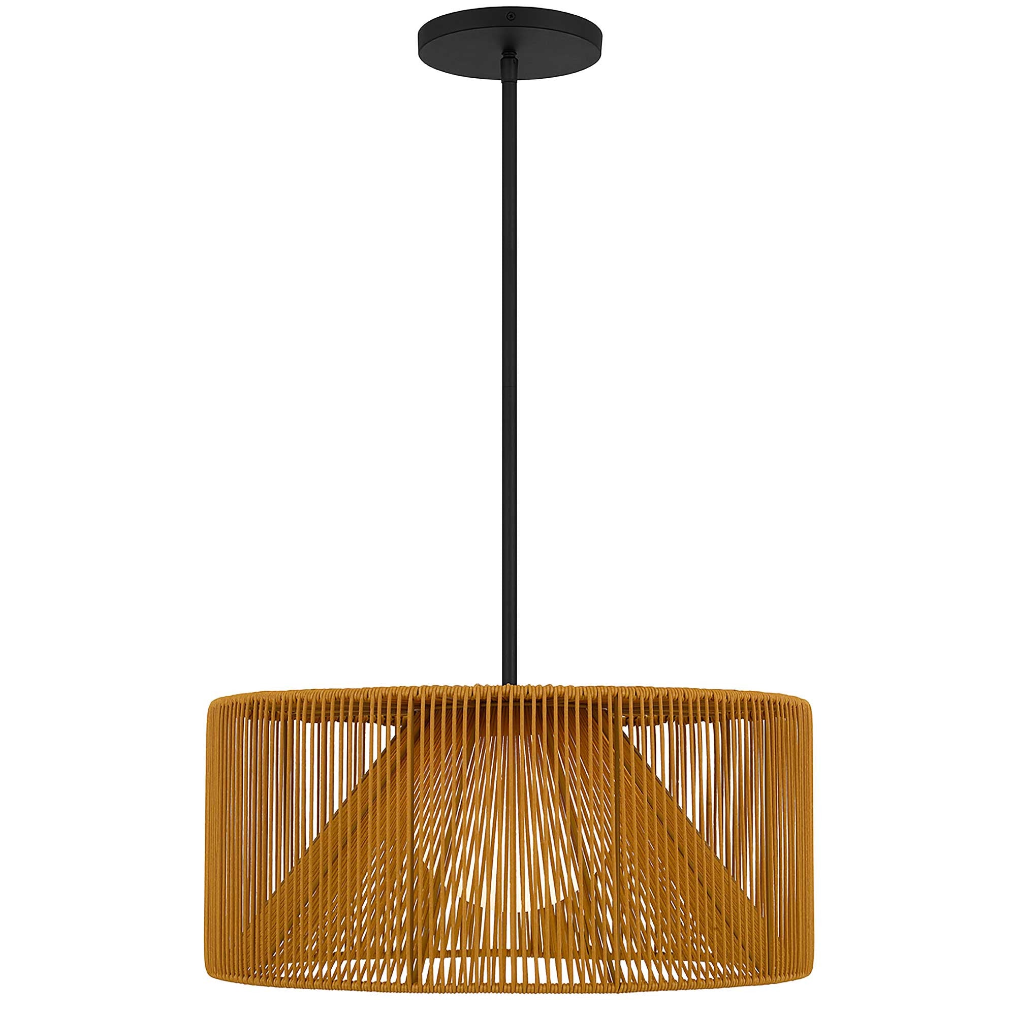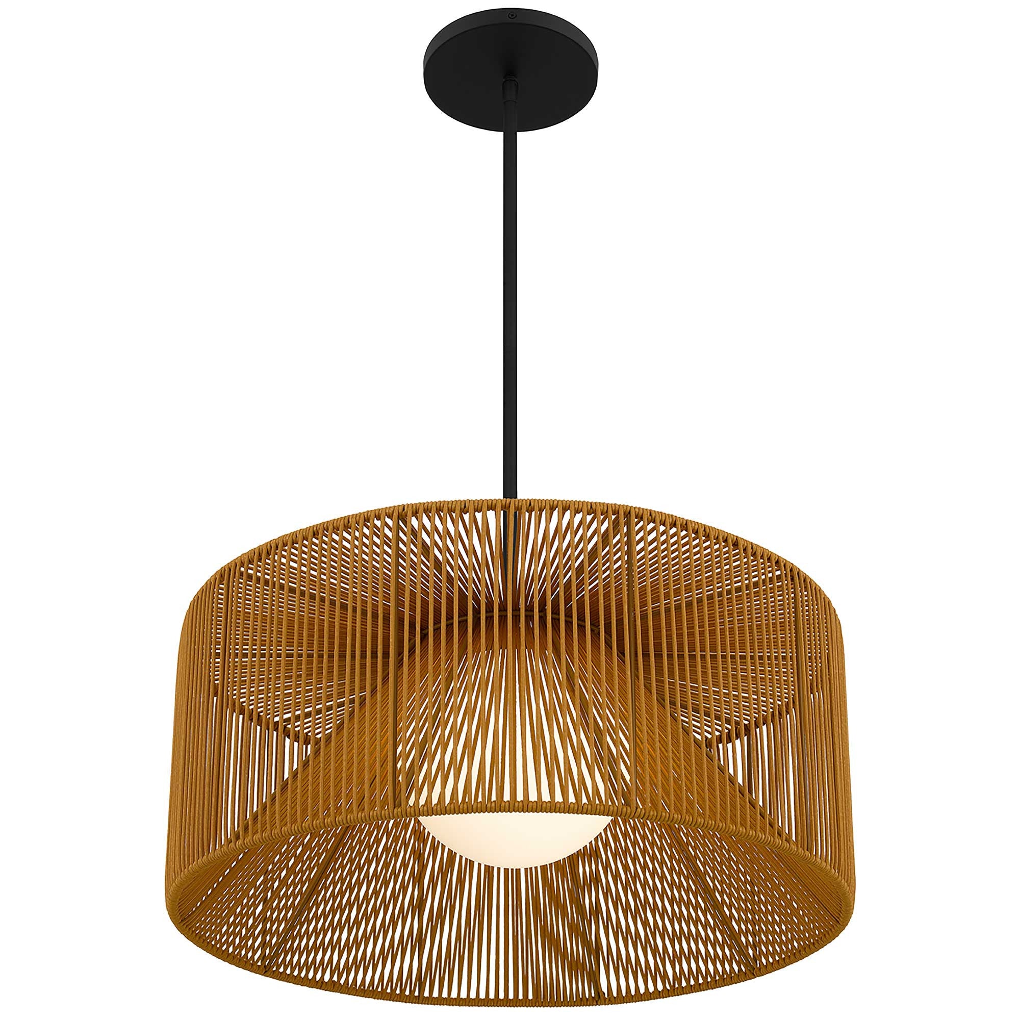 Natural And Black Rattan String And Metal LED Dimmable Outdoor Hanging Pendent Light