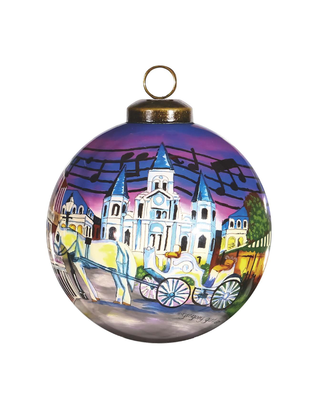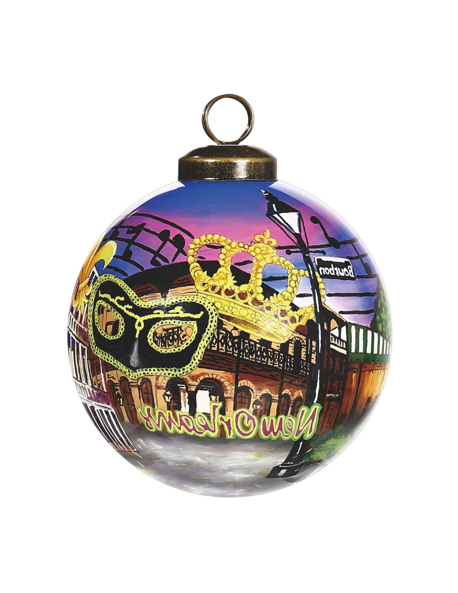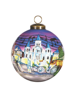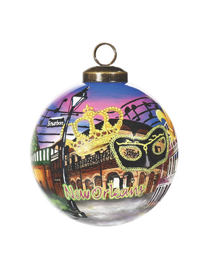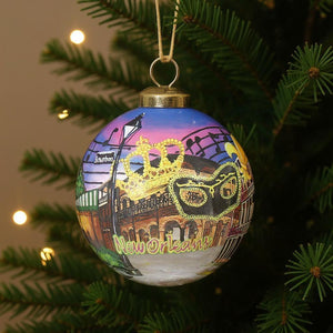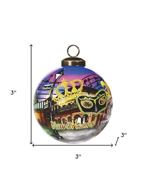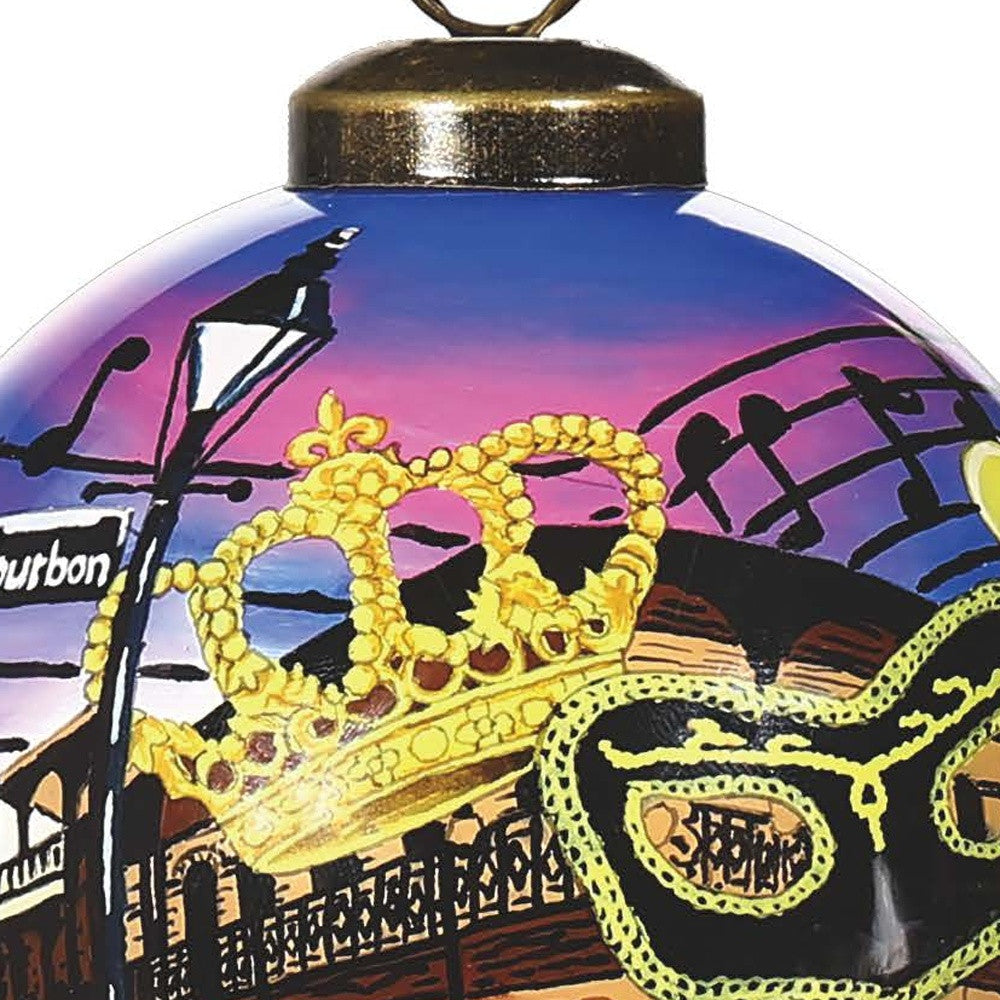 New Orleans Hand Painted Purple Gold And Brown Glass Ball Ornament