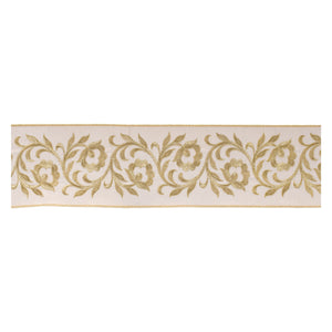 Ornate Embroidered Leaves Wired Ribbon 4" x 5 Yds. Shatterproof Ribbon