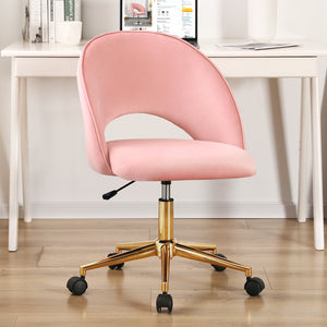 Pink Baby Pink and Gold Adjustable Height Swivel Rolling Office Chair