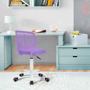 Purple and White Adjustable Height Swivel Rolling Office Chair