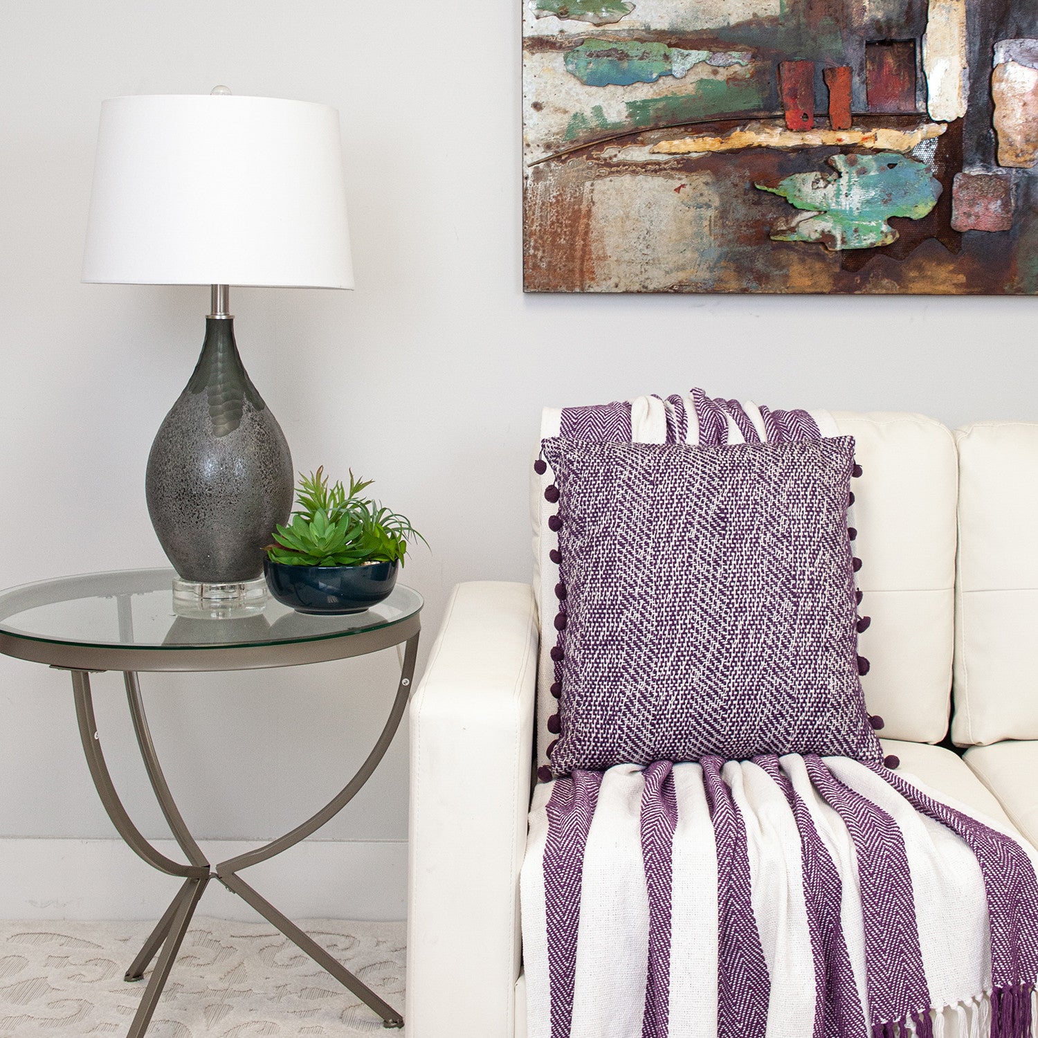 Purple Woven Cotton Throw Blanket