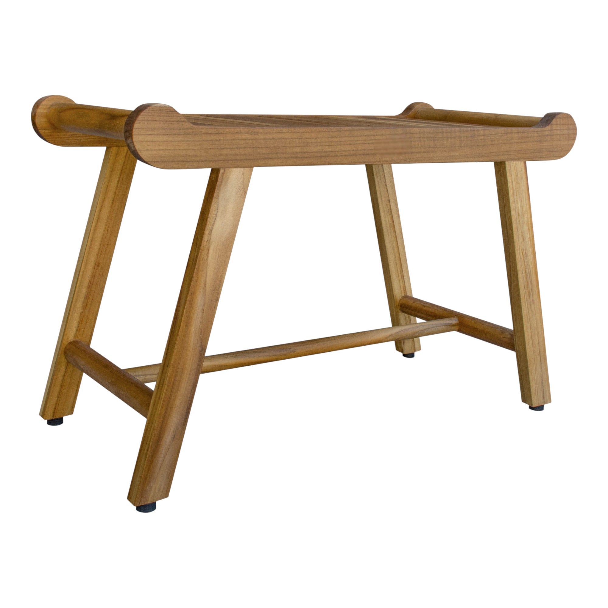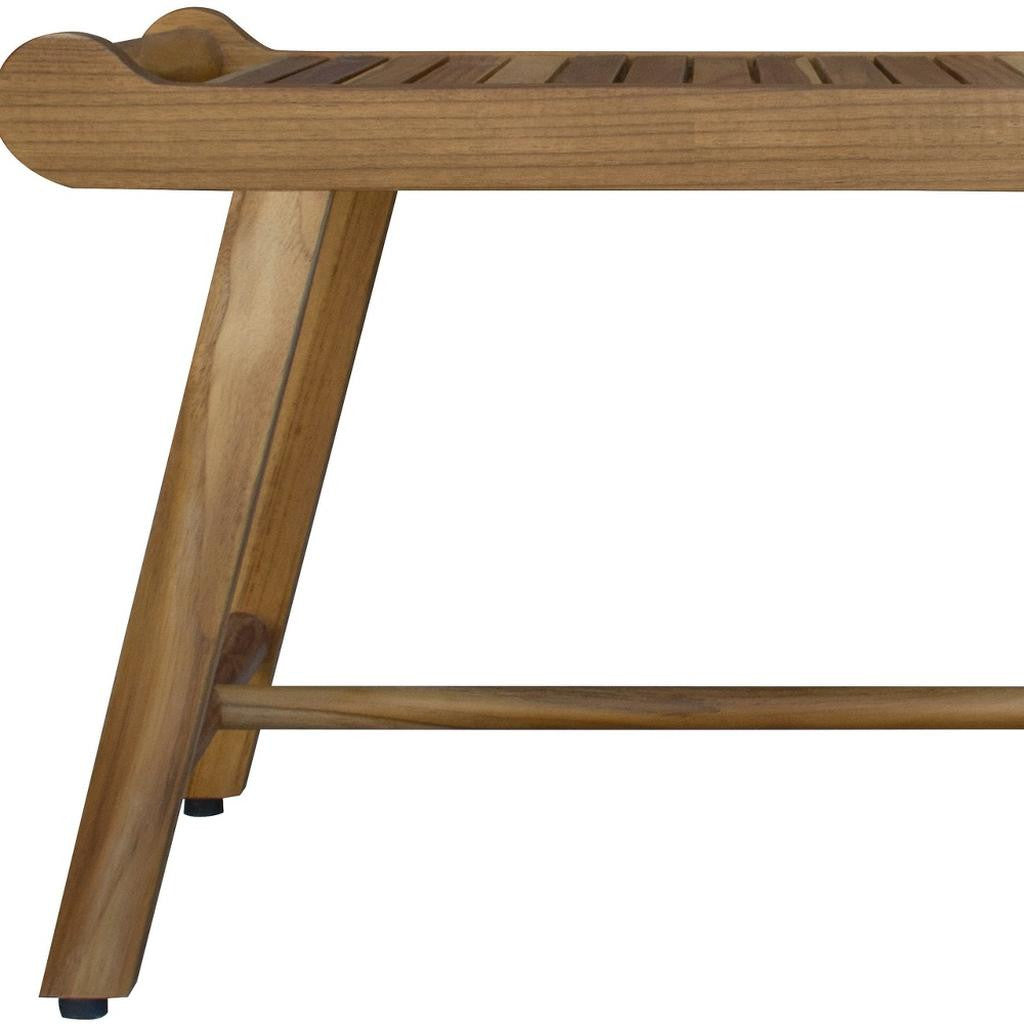 Rectangular Teak Shower Bench With Handles In Natural Finish