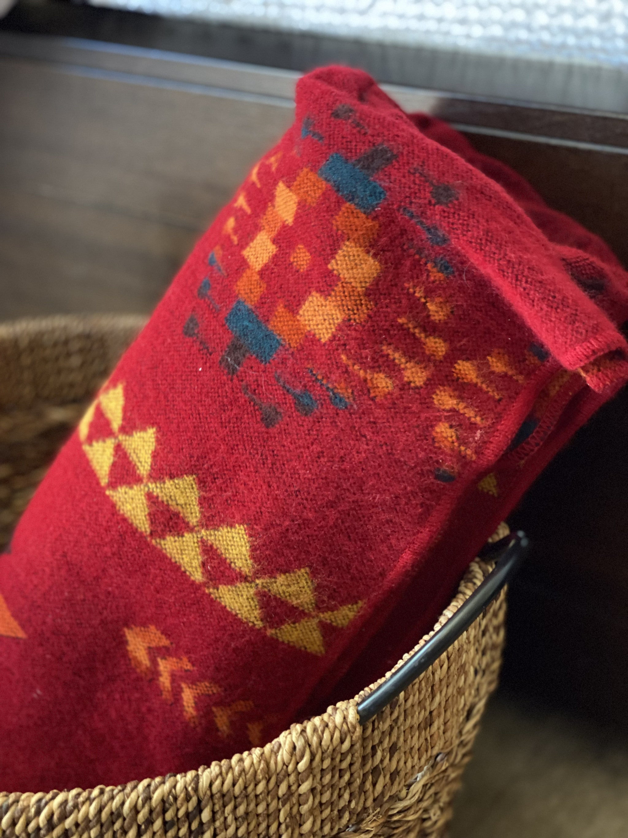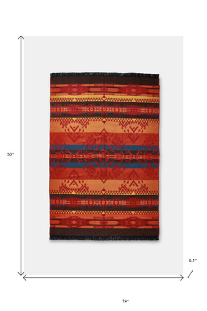Red Orange Woven Acrylic Reversable Throw